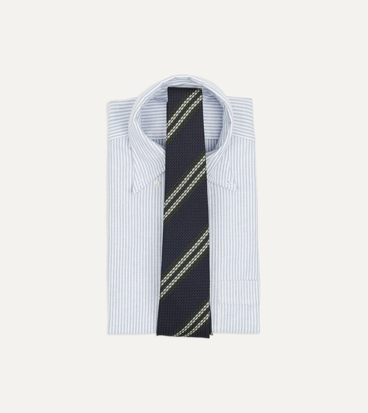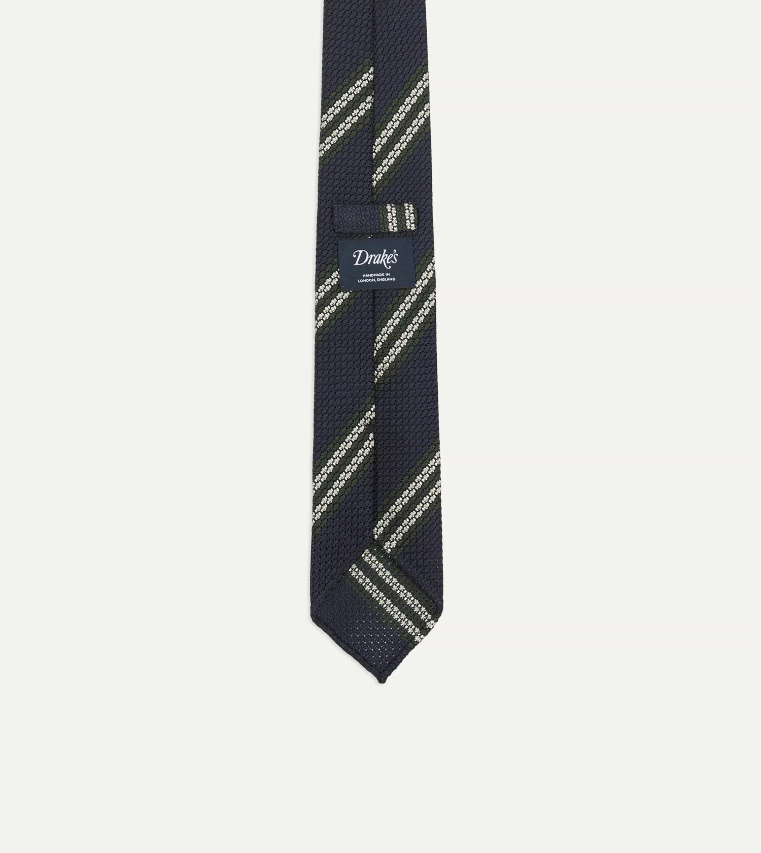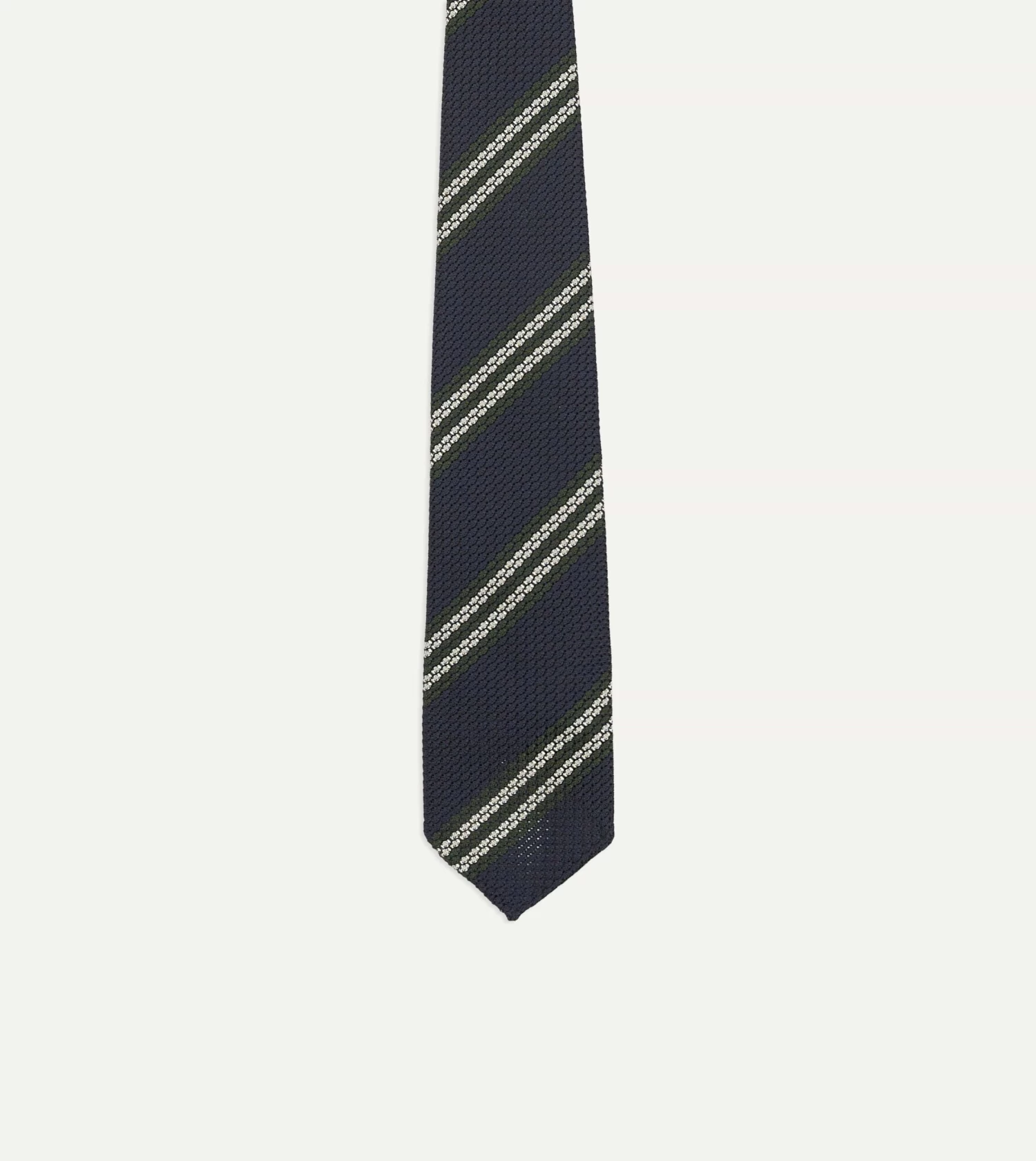 Navy, Green And White Double Stripe Silk Grenadine Tie