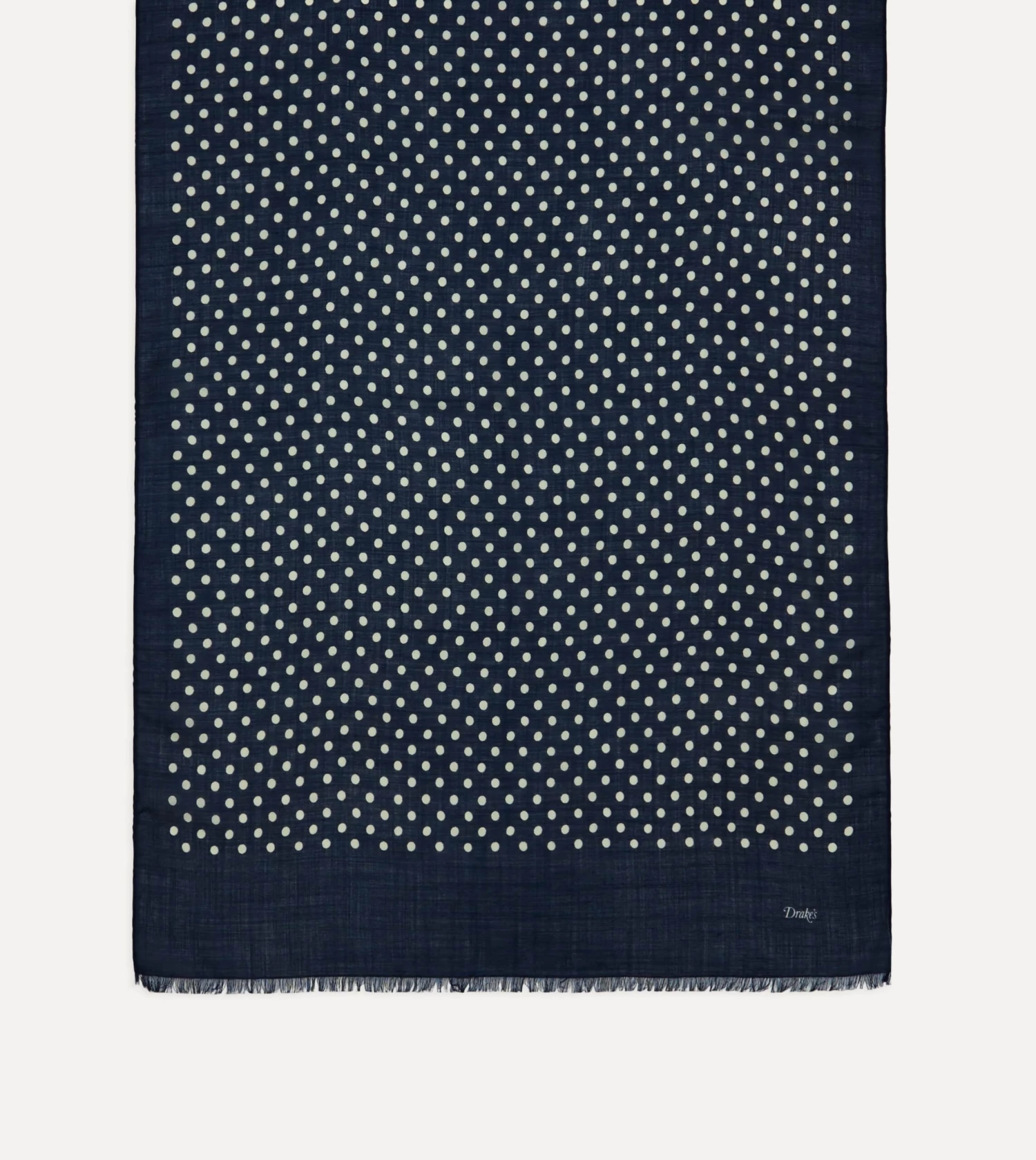 Woven from a lightweight, airy blend of wool and silk, this classic scarf is printed with a hand-drawn and slightly irregular polka dot design and features eyelash fringing at both ends for an airy addition to your cold-weather arsenal.