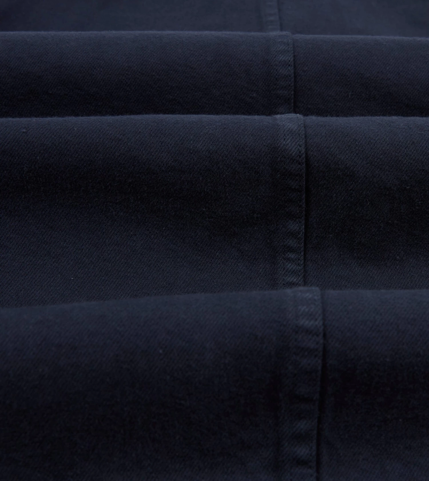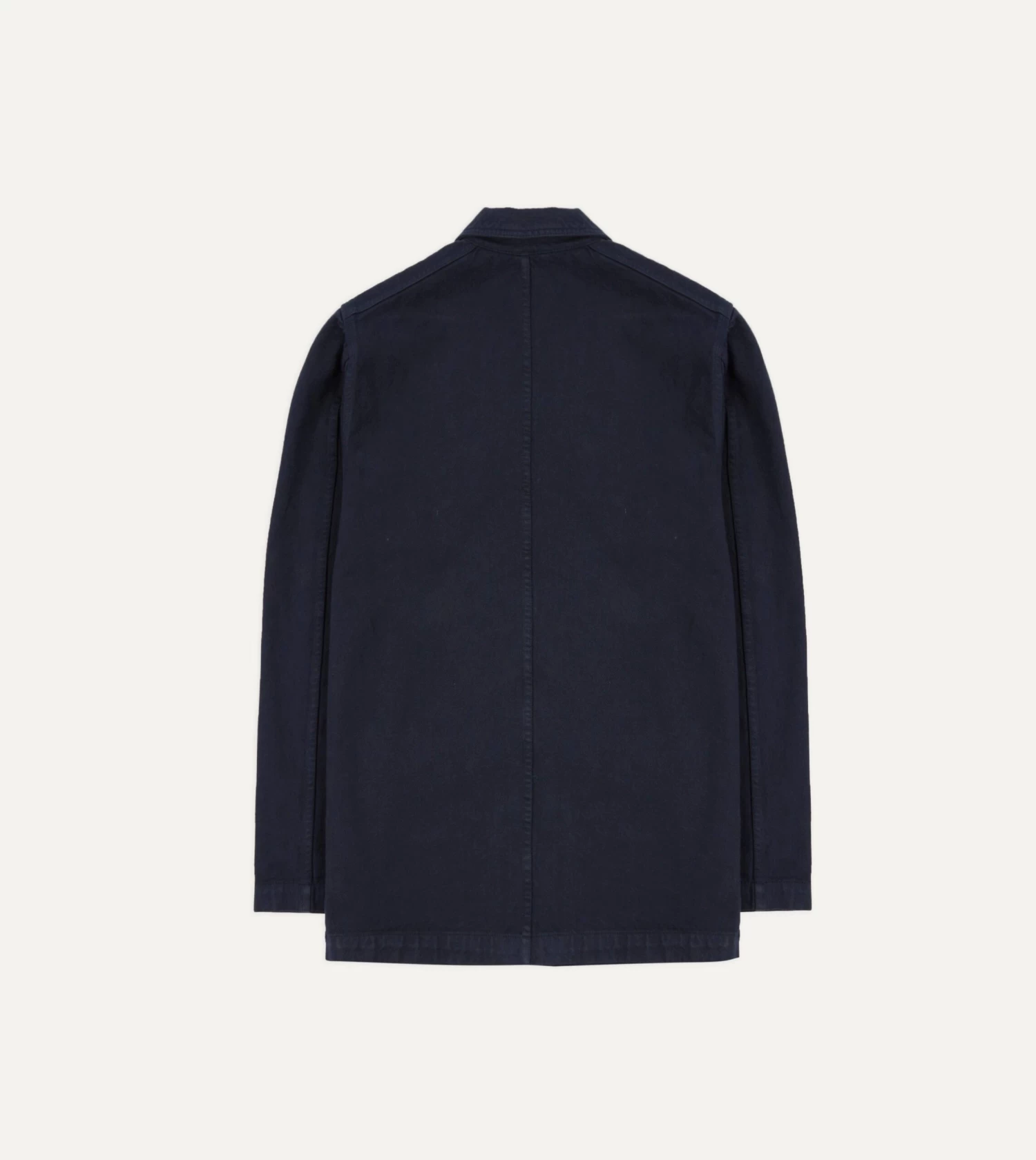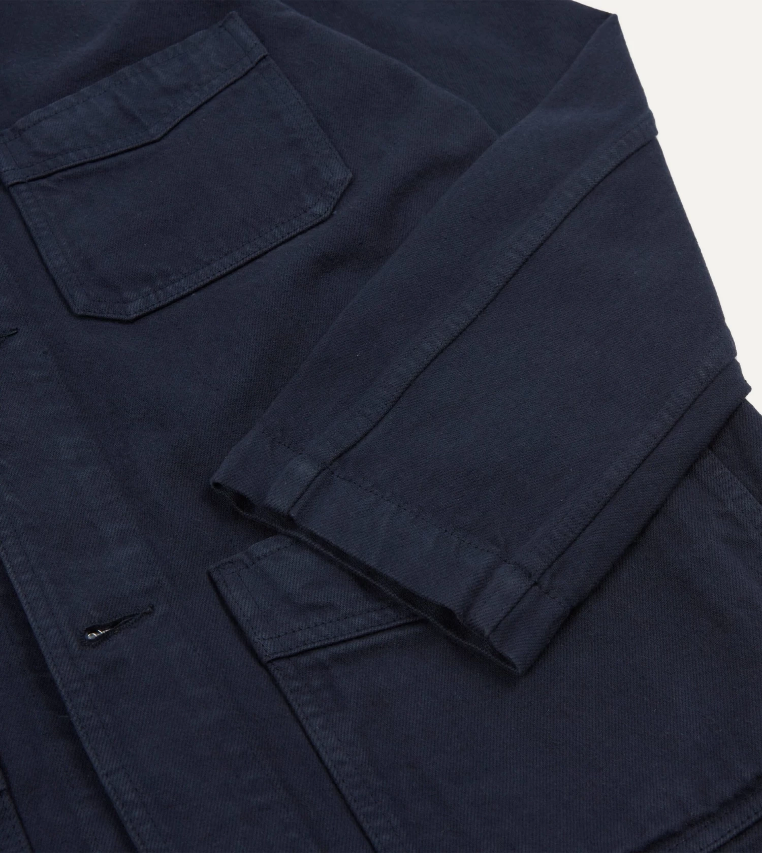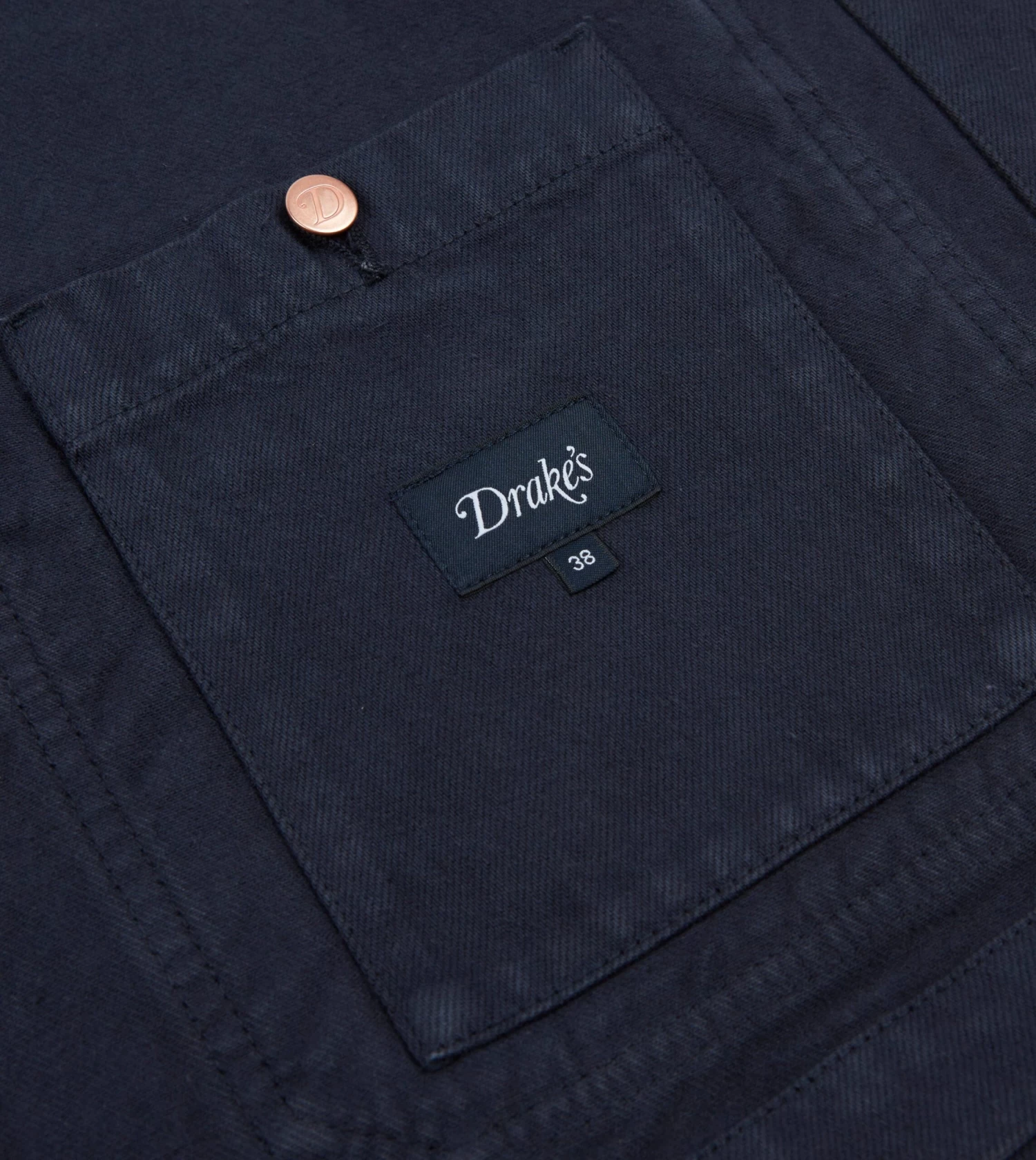 A staple of casual wardrobes the world over, the chore jacket retains its relevance on account of its stylishly spare construction, and its utmost versatility. This version is made from a heavyweight cotton twill, with three outer pockets (plus a signature Drake’s ticket pocket peaking out on the left-hand side), and one inner pocket. It is cut generously, with a slightly boxy shape recalling the original workwear garments worn around the turn of the century, as opposed to their slimmed-down, contemporary counterparts.