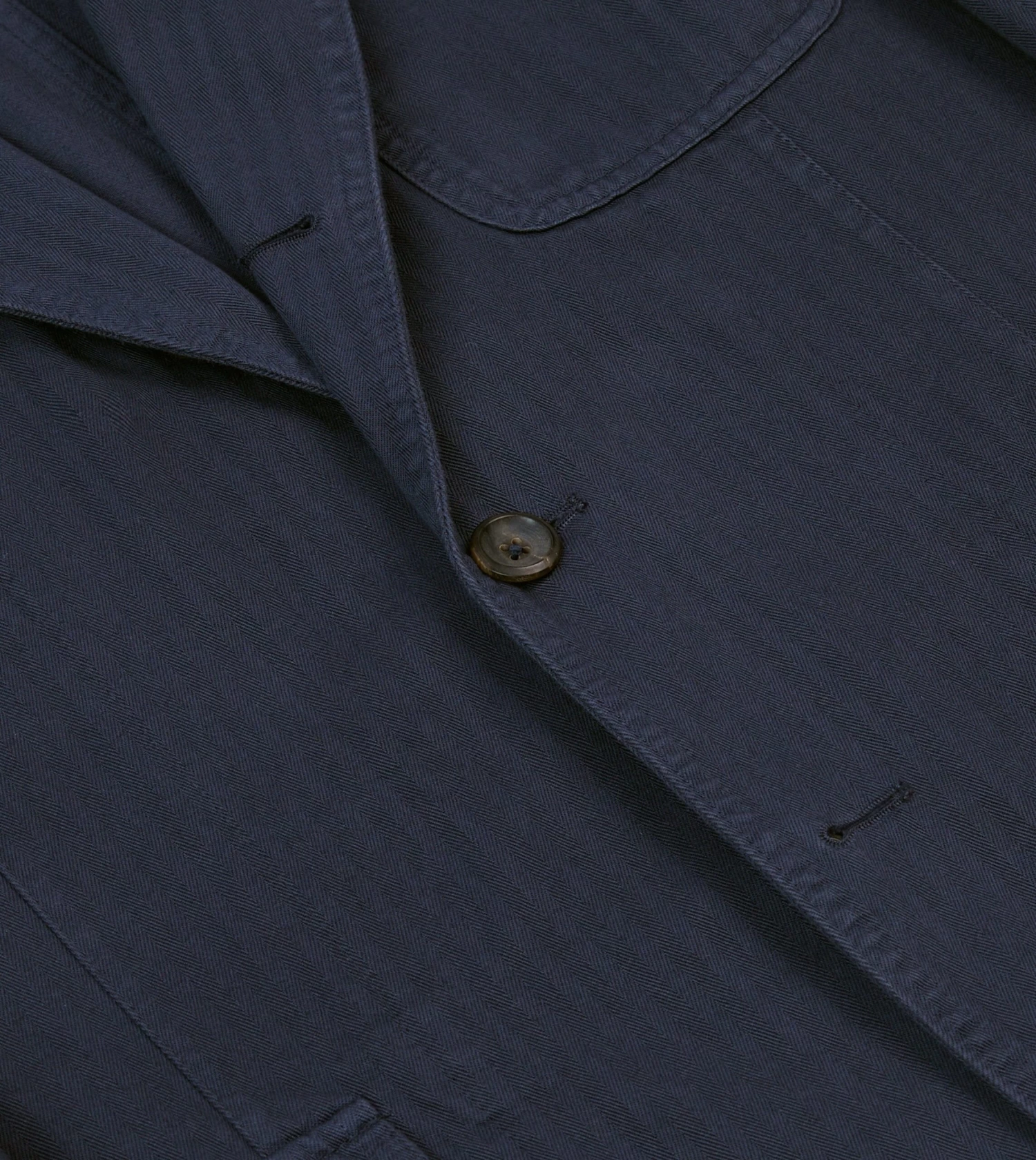 Cut from a 12.6oz herringbone cotton woven in the heart of Valtellina since 1895, pair it with the matching trousers for an informal take on the classic two-piece suit.