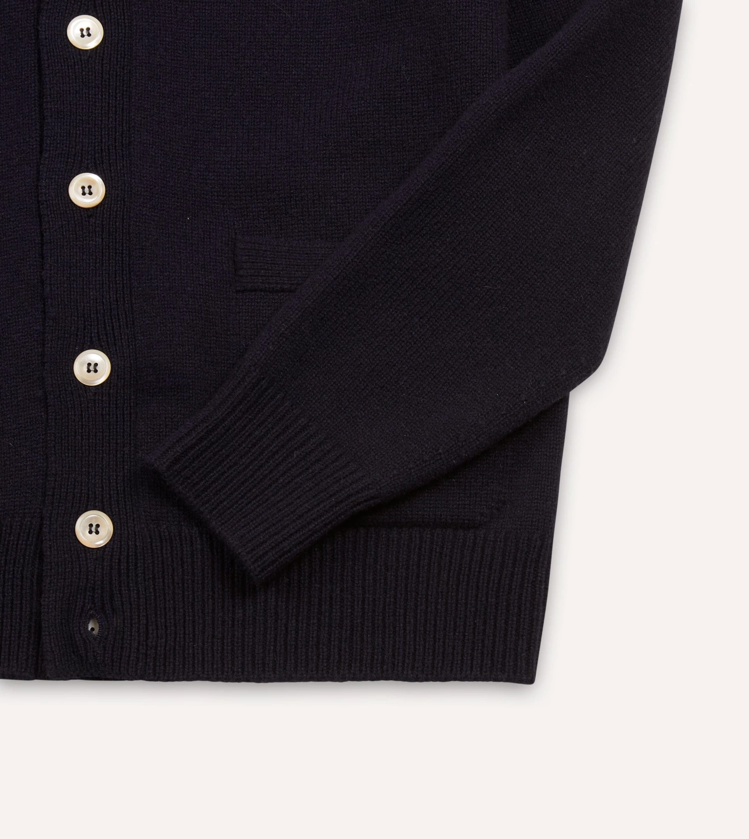 With ribbed hems and twin patch front pockets, the functional nature of this classic cardigan is elevated by mother of pearl values and saddle shoulders for a more relaxed silhouette.
