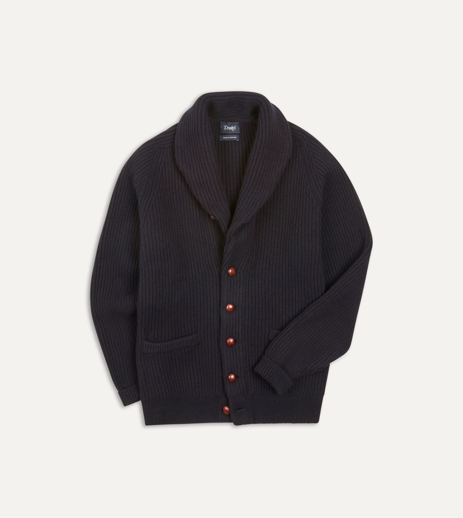 Navy Lambswool Shawl Collar Cardigan