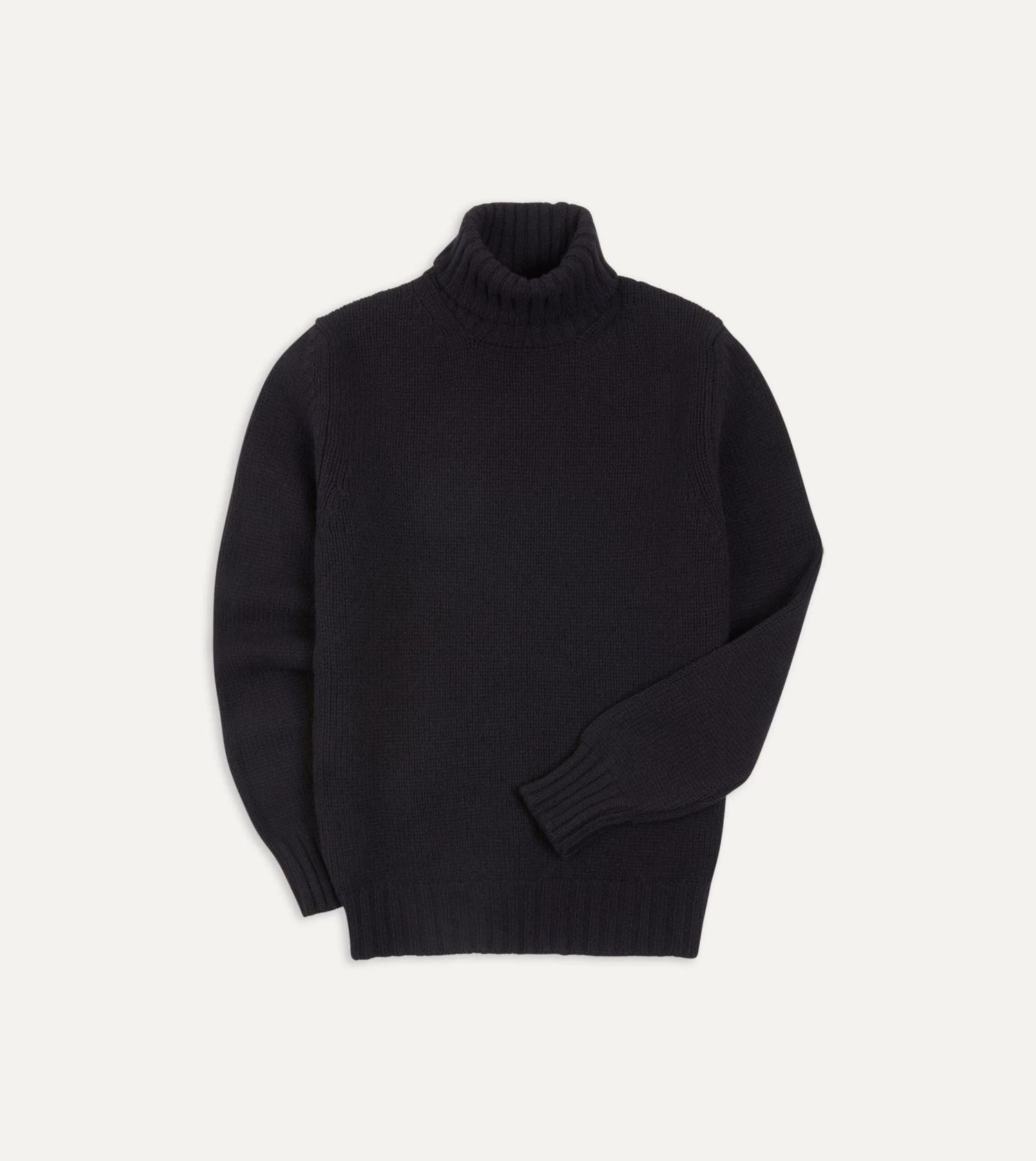 Taking its cues from the heavyweight roll neck jumpers that were standard issue for submarine crews during the Second World War, this jumper has a chunky gauge knit and a tall roll neck collar, making for a practical and ruggedly stylish item for the colder months.