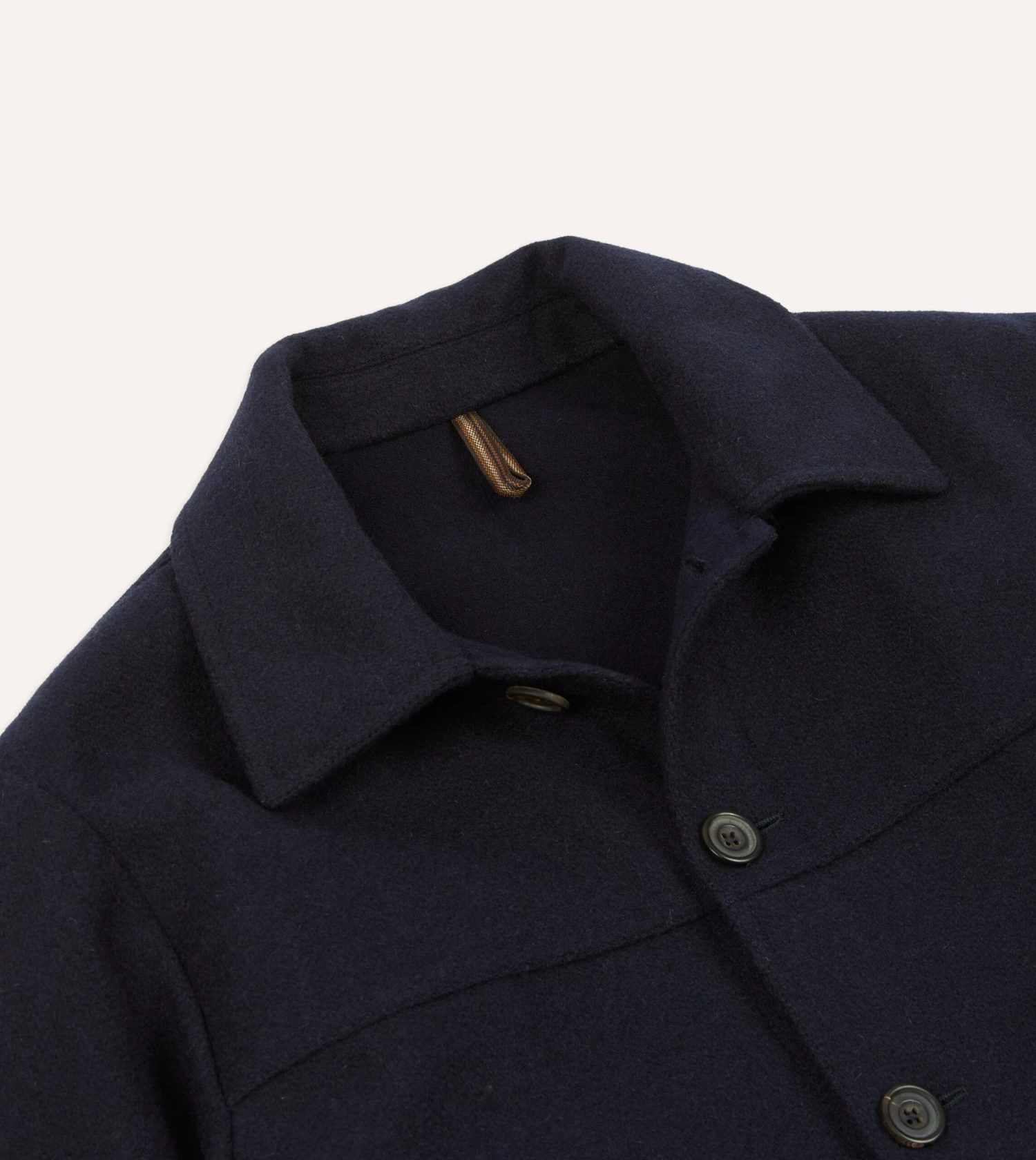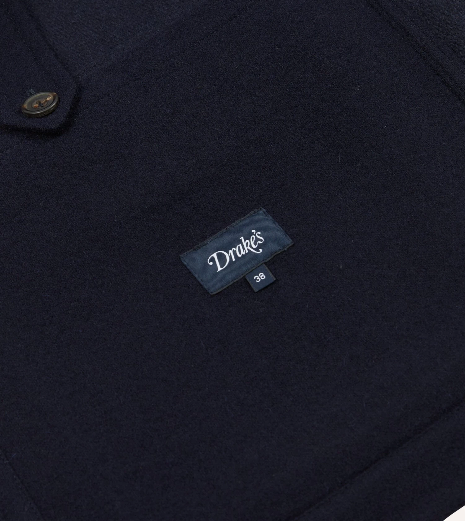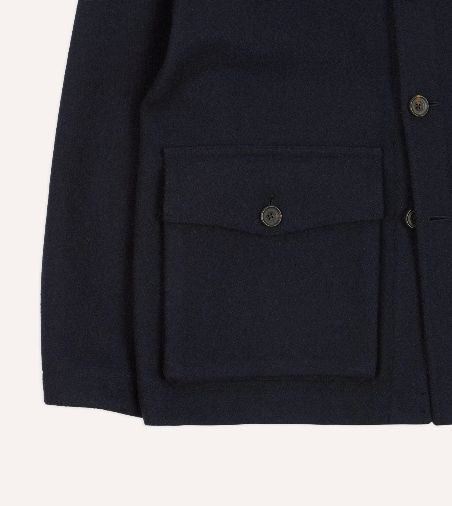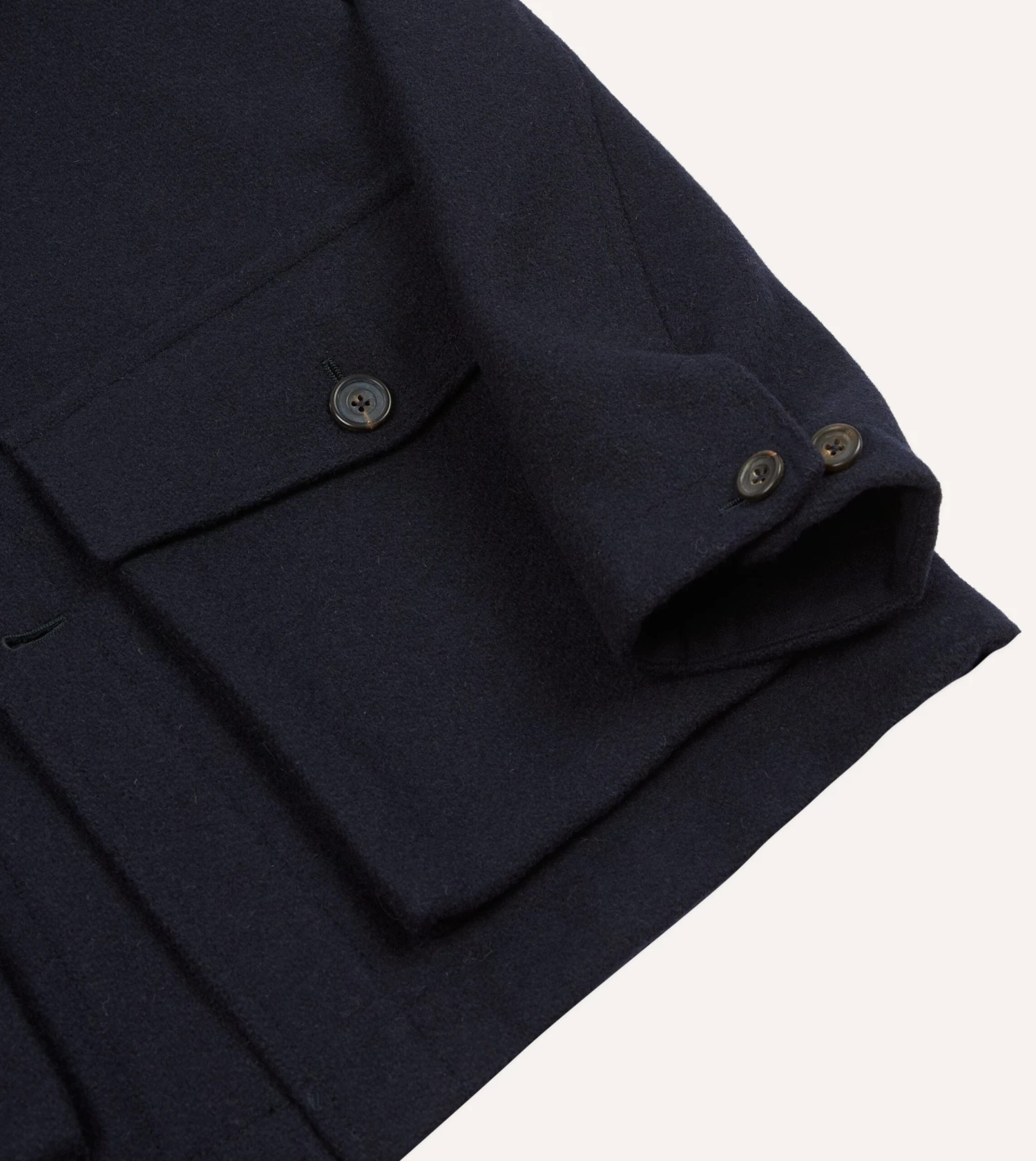 Constructed from a stout 16.2oz melton wool woven in Italy, it is finished with genuine horn values and features a distinctive reinforced shoulder, alongside patch and flap bellows pockets and adjustable cuffs.