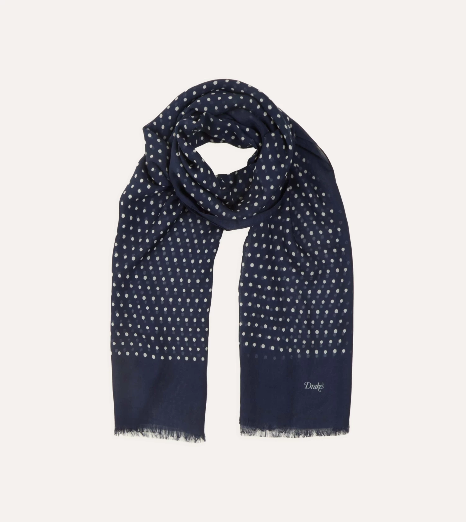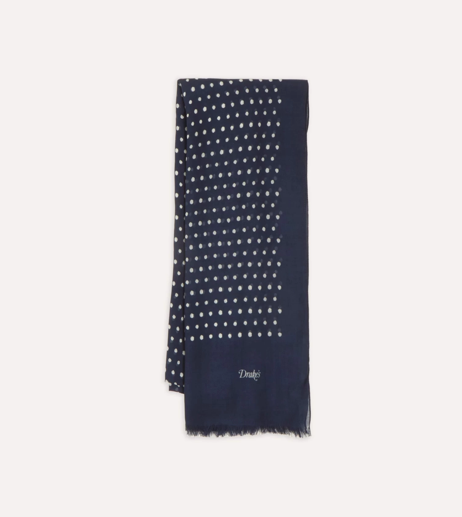 Woven from a lightweight, airy wool, this classic scarf is printed with a classic polka dot design and features eyelash fringing at both ends for an airy addition to your cold-weather arsenal.
