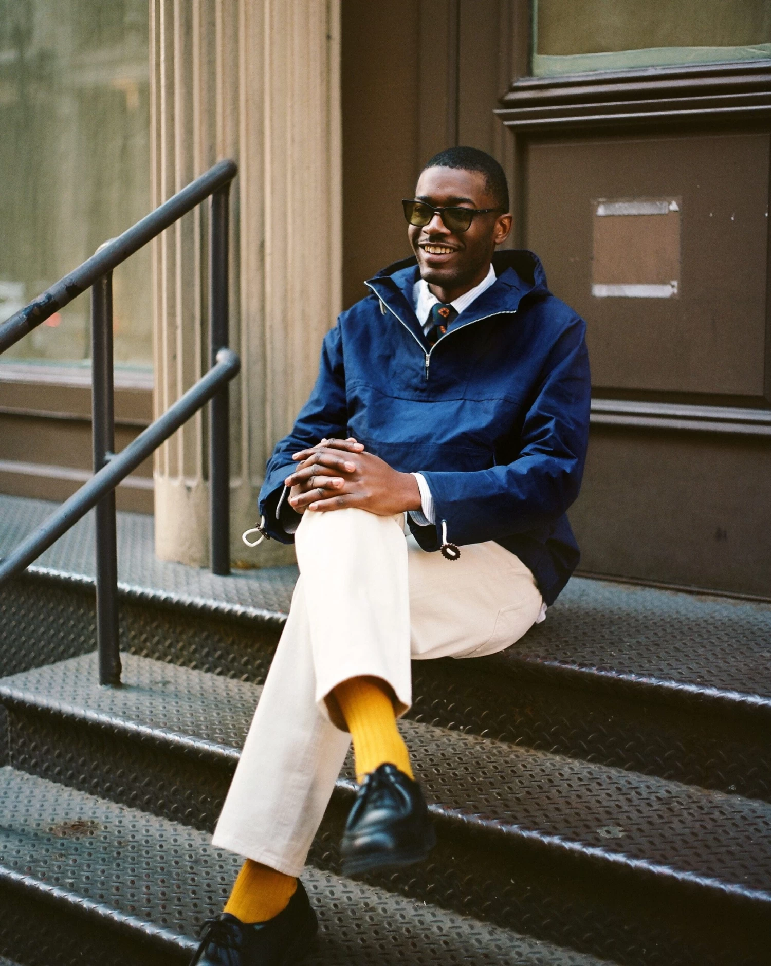 Constructed from a 8.7oz waxed cotton sourced from the world’s leading manufacturer of weatherproof fabrics, this sporty piece is inspired by the preppy jackets of the 1970s and 80s, as well as nautical outerwear worn by sailors and fishermen.