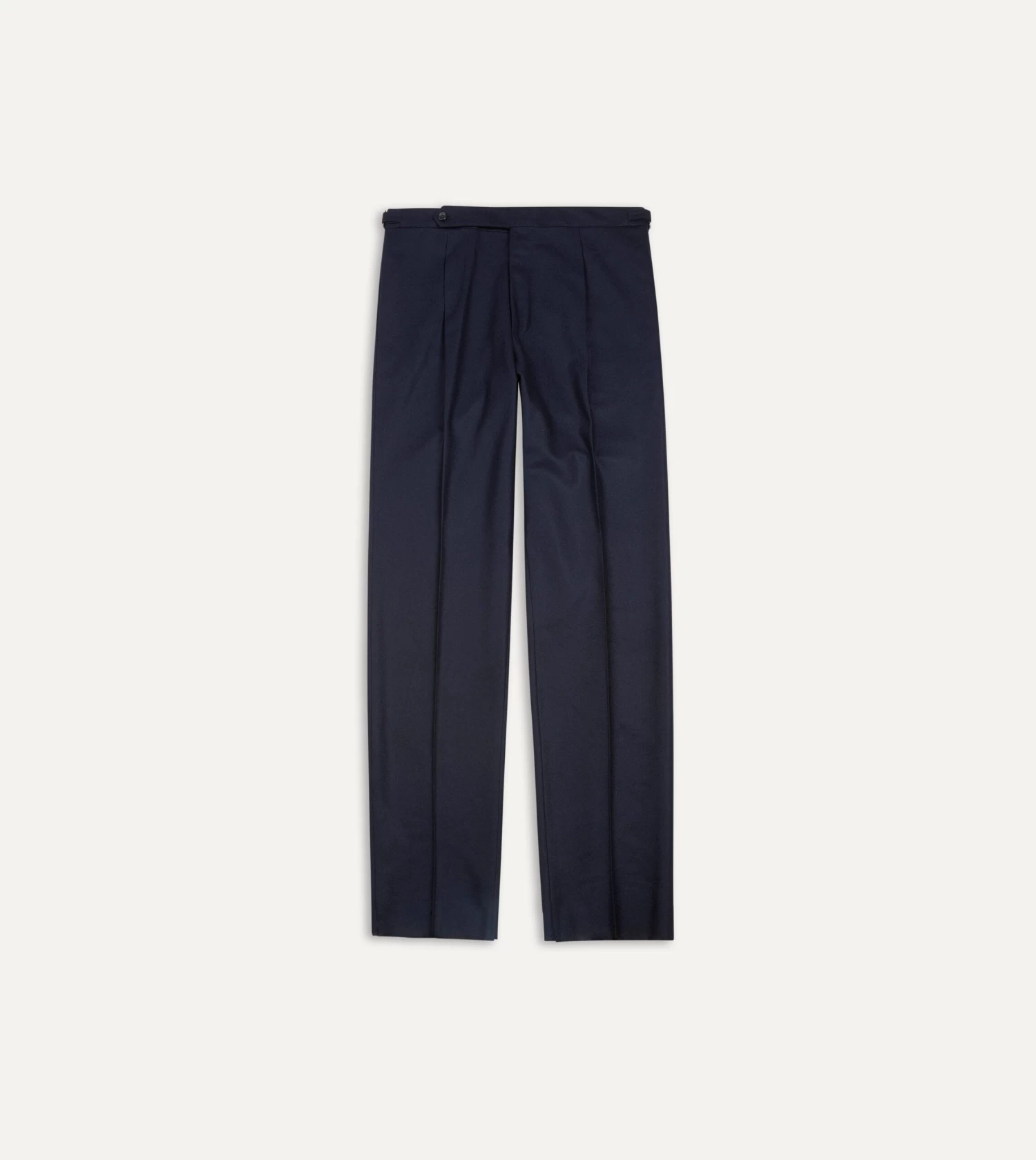Crafted from a mid-weight wool flannel, the half-lined trousers feature understated details such as an extended tab front, French bearer valueing with interior waistband curtaining, an after-dinner split to the rear, and side adjusters in lieu of belt loops.