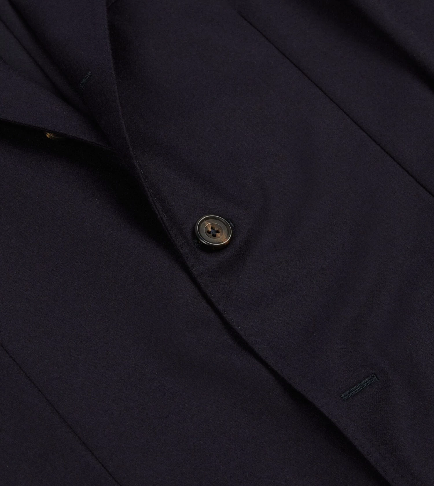 A rich, pure wool flannel combines with an unlined Italian construction for the optimum in lightweight tailoring.