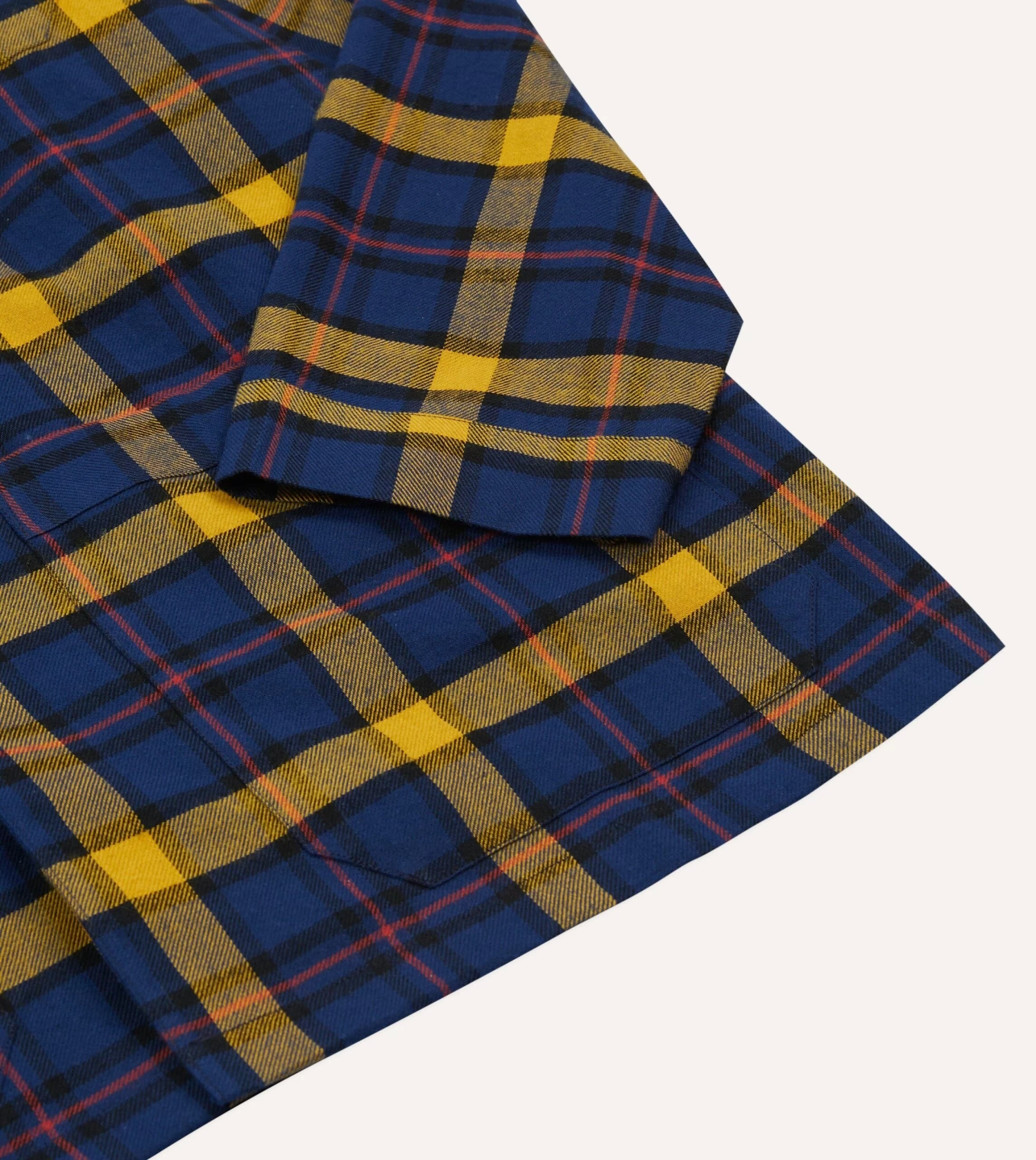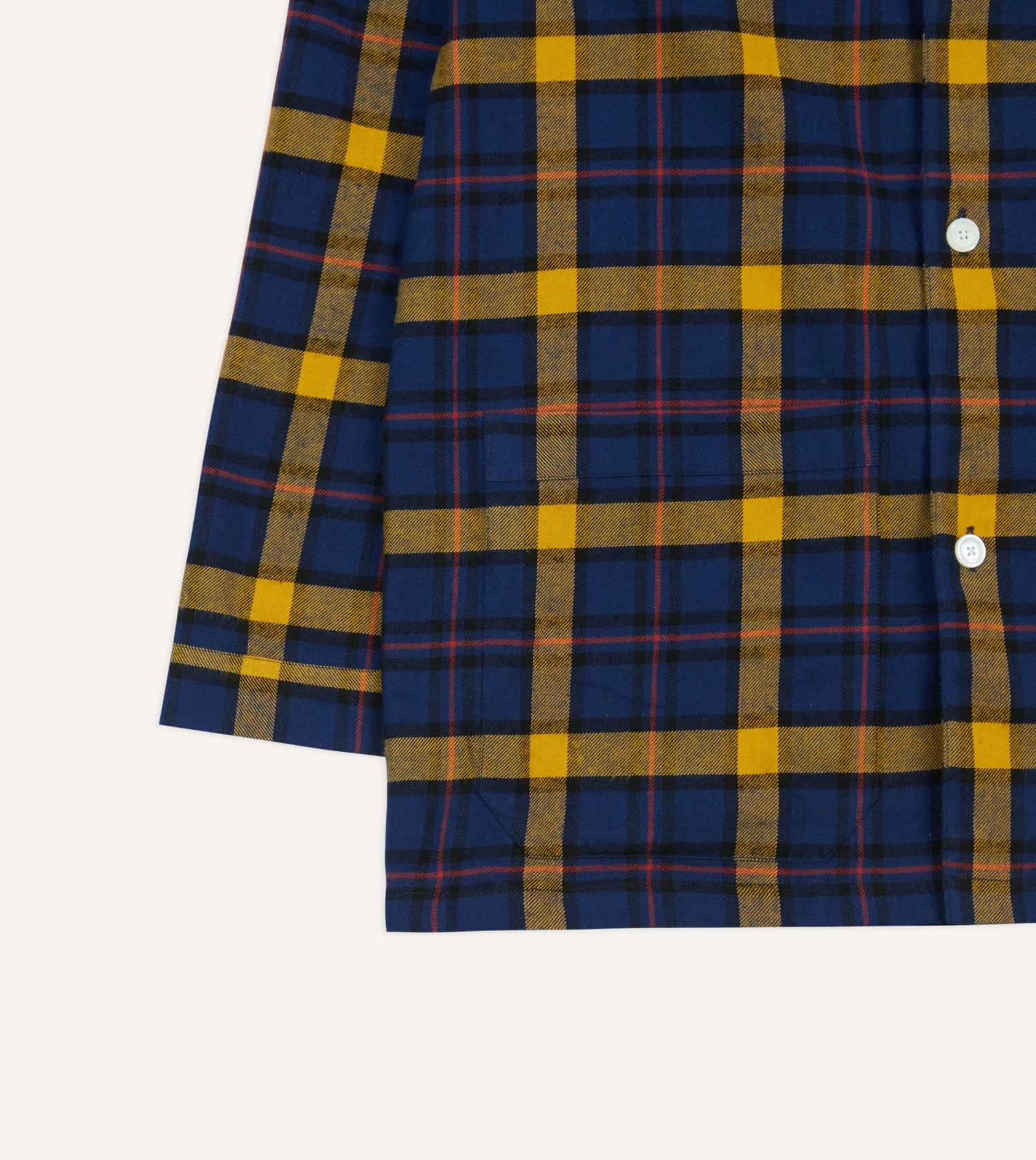 Constructed from a breathable and cosy cotton, this pyjama set features a value front shirt with a rounded collar, three patch pockets and square hem.