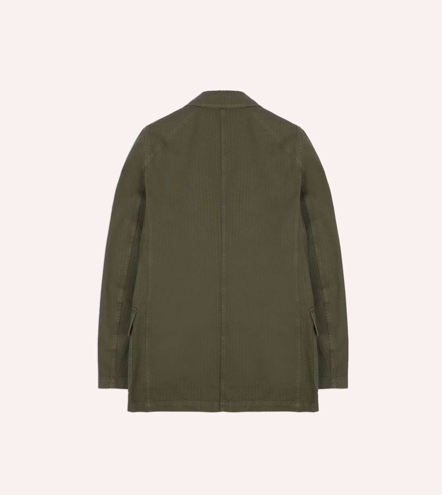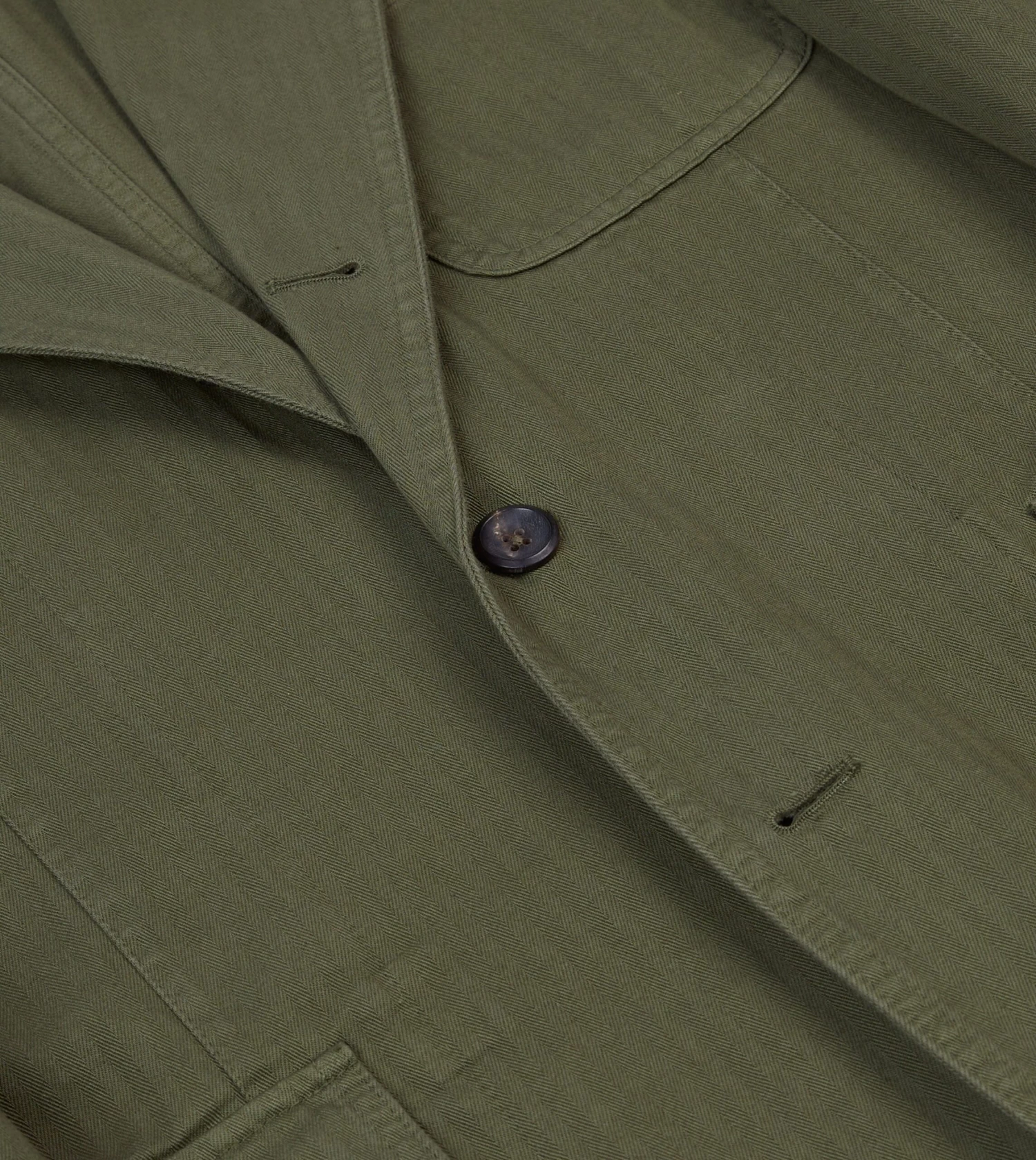 Cut from a 12.6oz herringbone cotton woven in the heart of Valtellina since 1895, pair it with the matching trousers for an informal take on the classic two-piece suit.