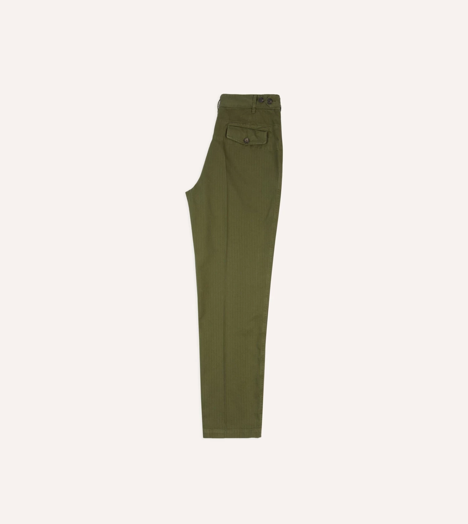 Cut from a 12.6oz herringbone cotton woven in the heart of Valtellina since 1895, pair it with the matching blazer for an informal take on the classic two-piece suit.