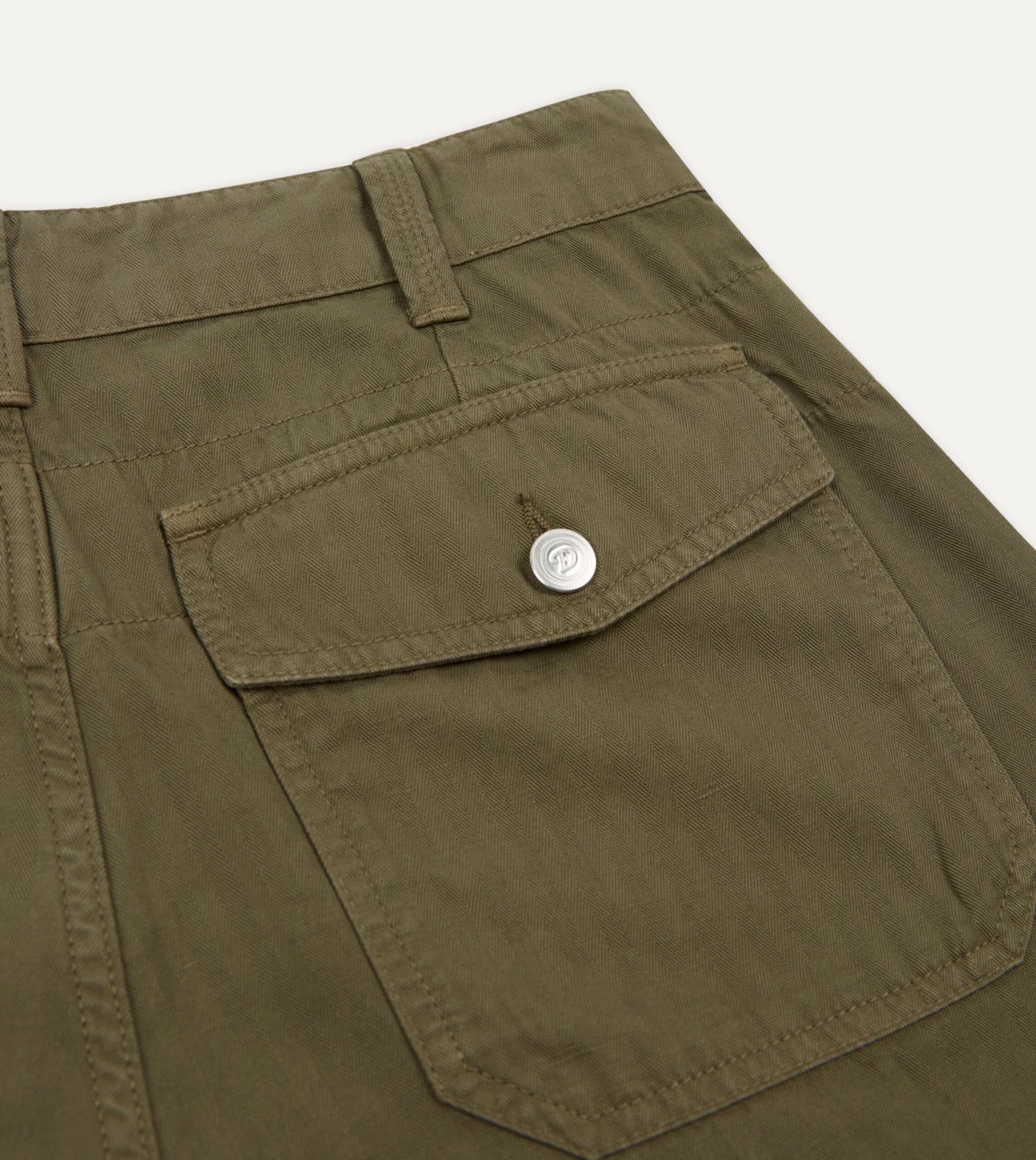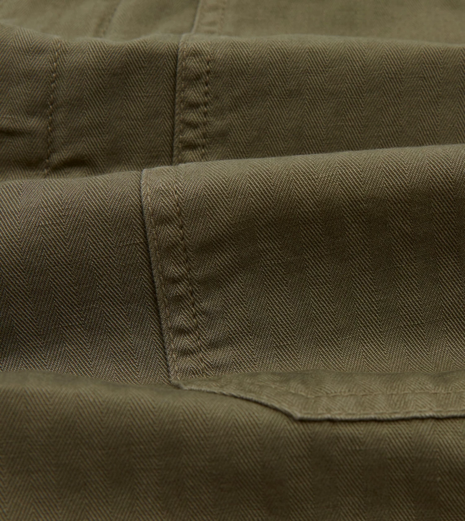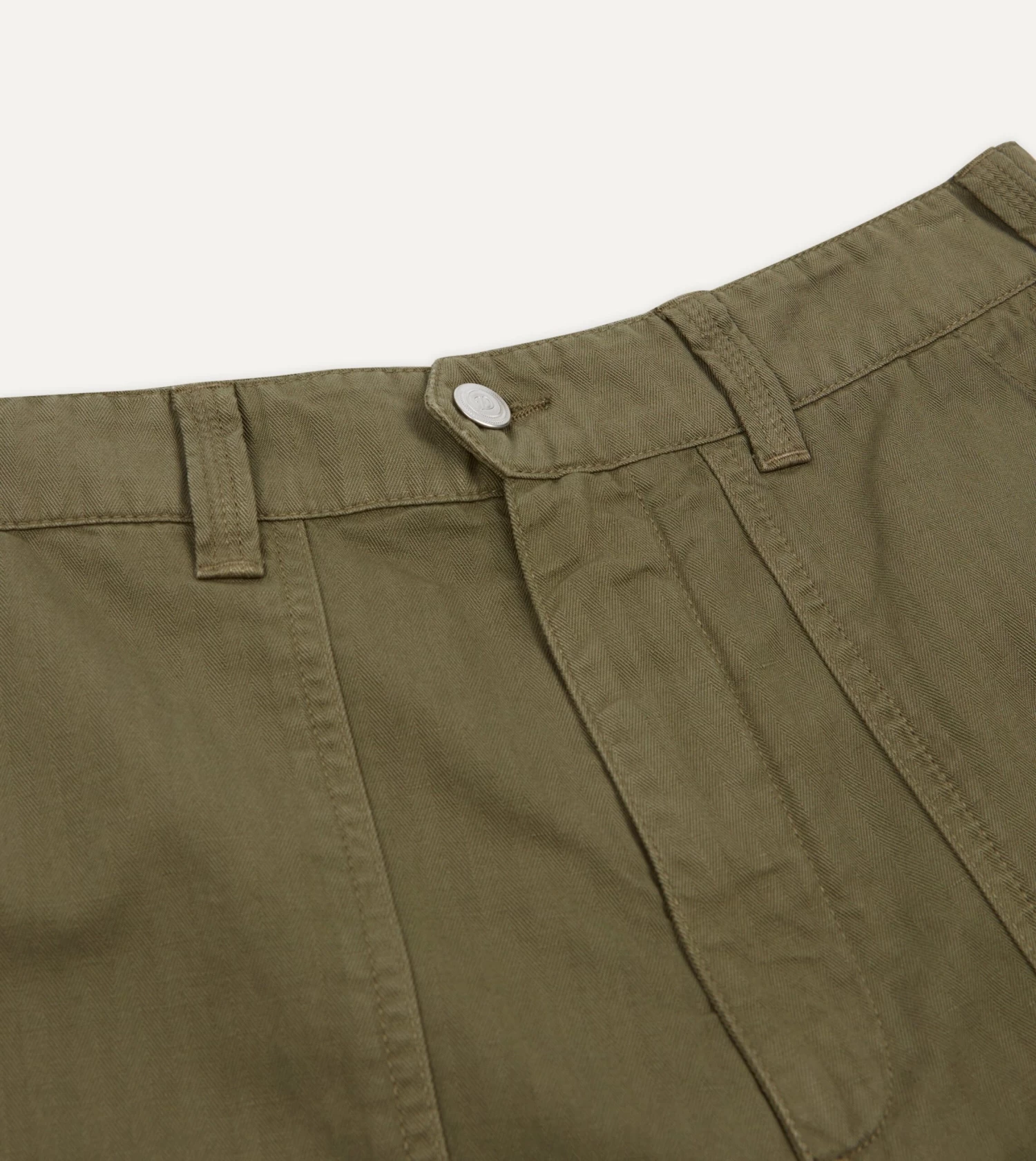 Olive Herringbone Cotton Linen Fatigue Shorts