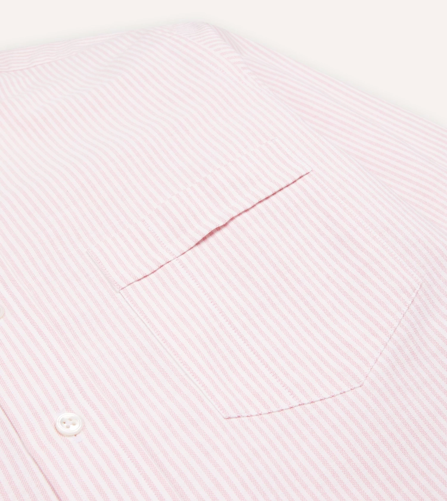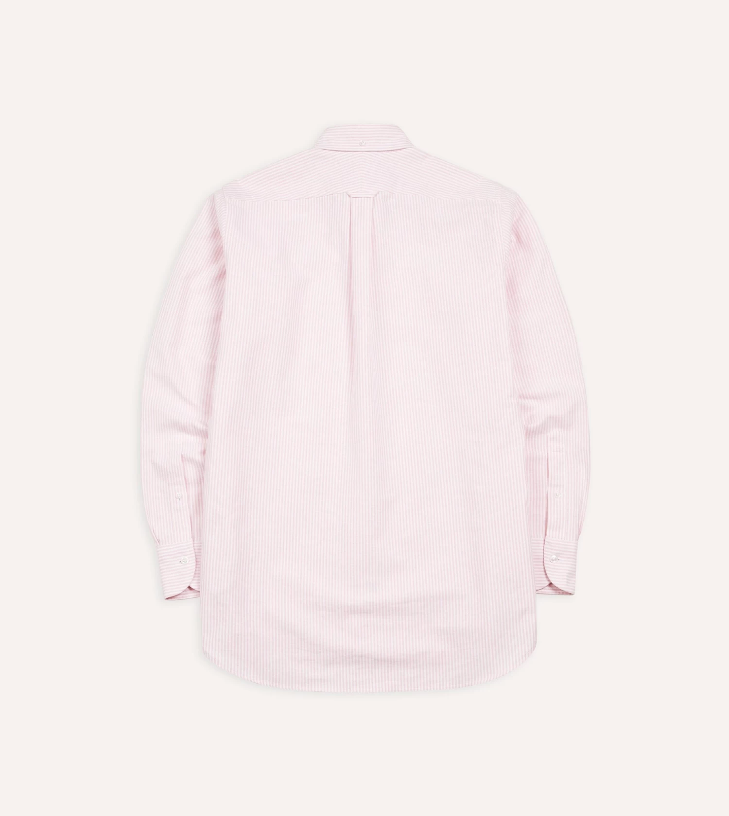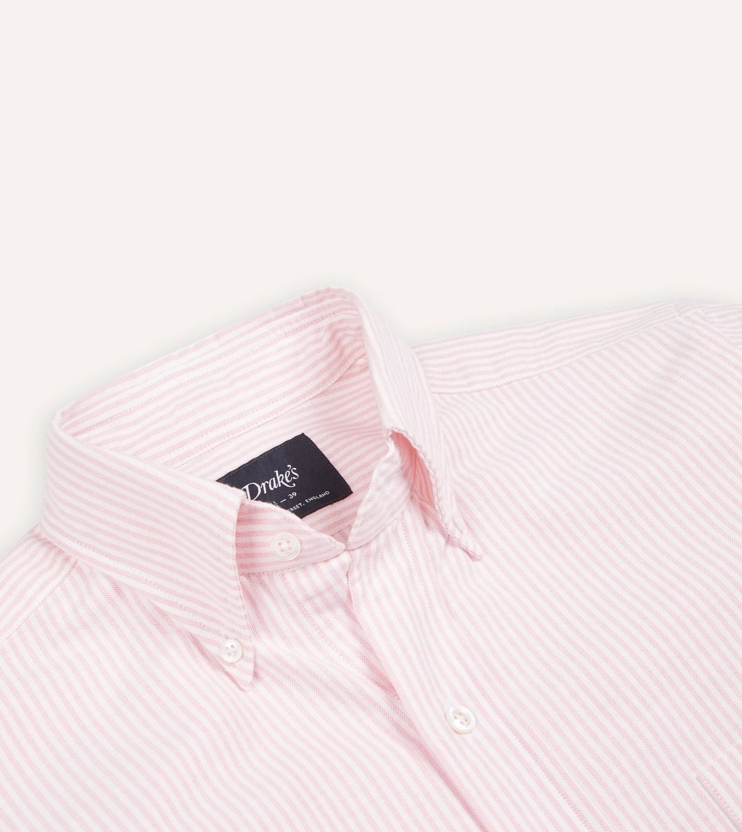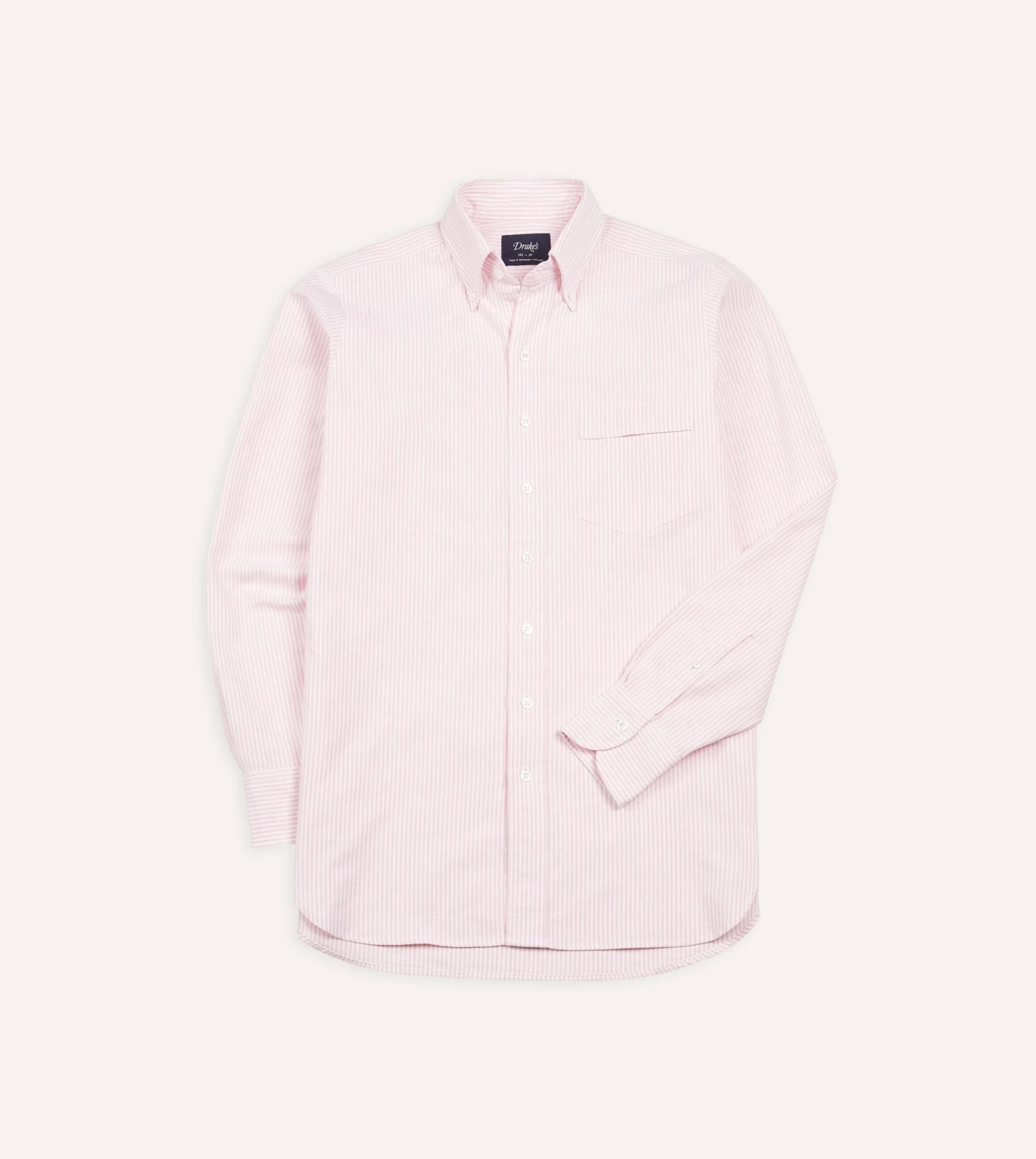 Pale Pink Ticking Stripe Cotton Oxford Cloth Button-Down Shirt