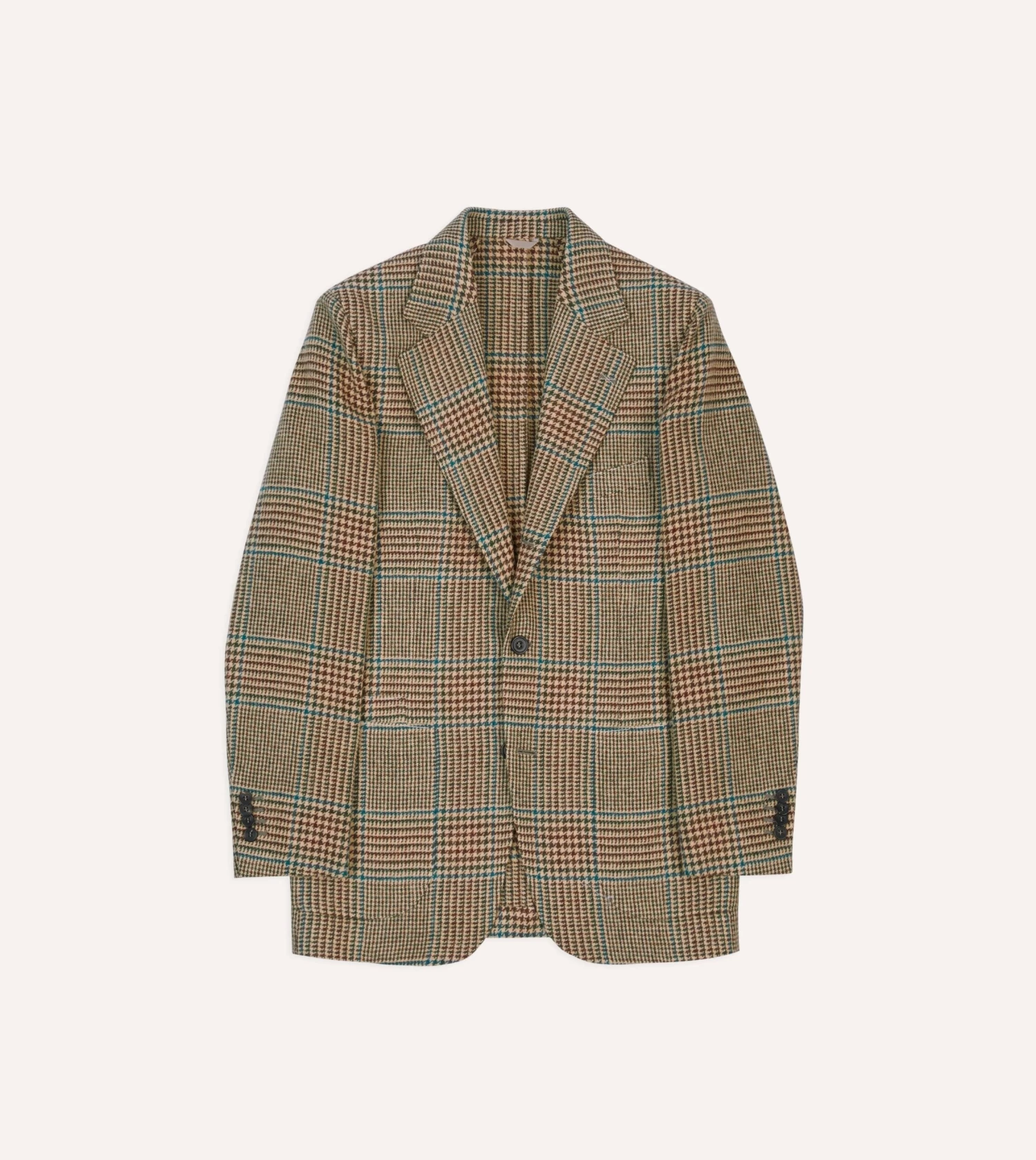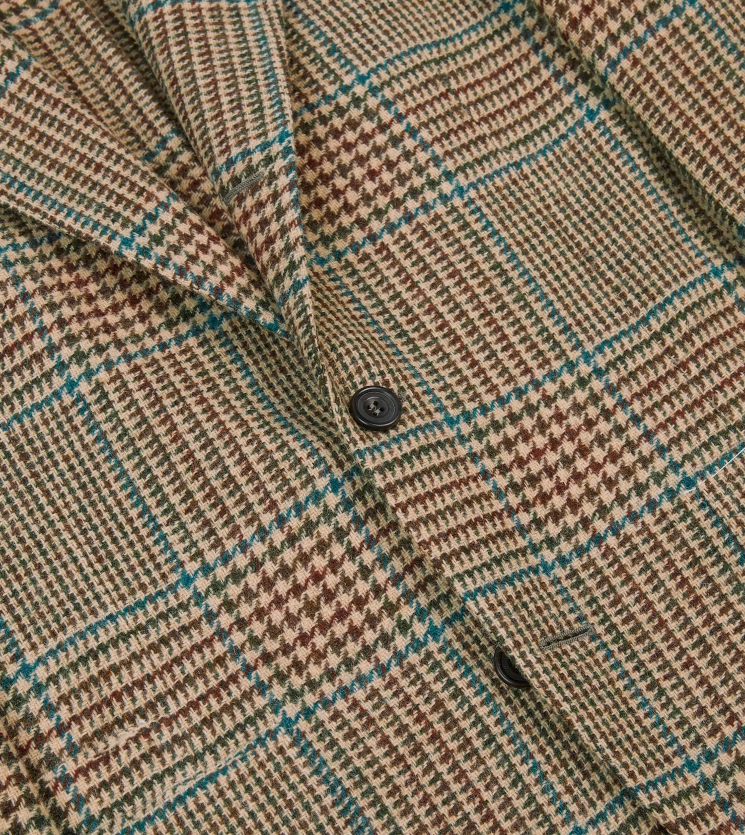 Few patterns are as enduring as the classic Prince of Wales check. This beautifully textured wool blazer boasts a deceptively rich colour palette, incorporating earthy tonal hues.