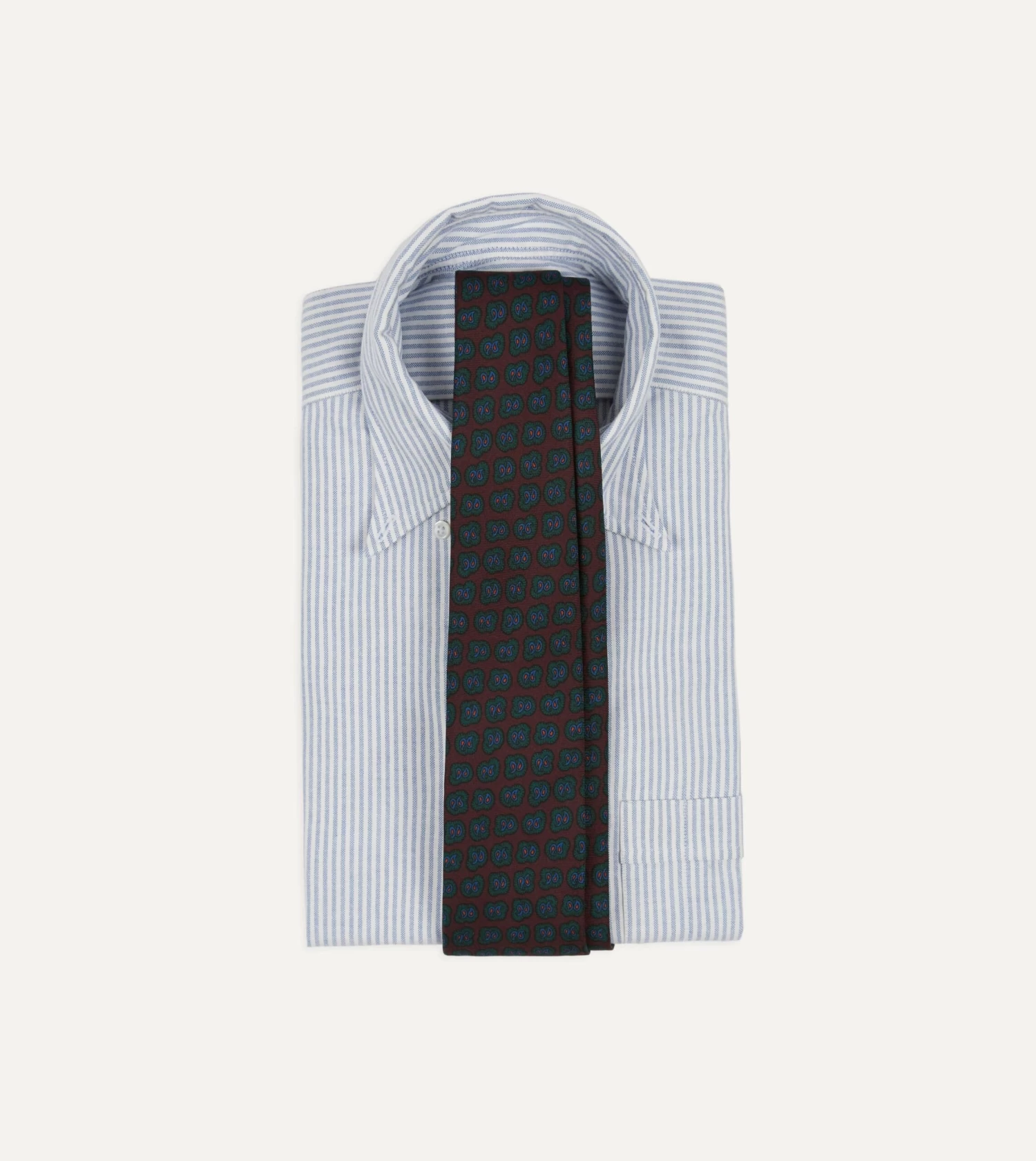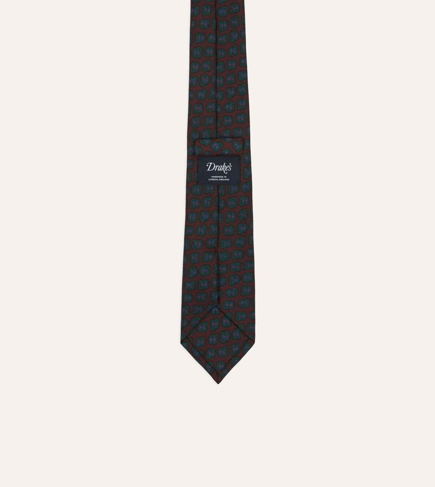 This design, printed in Macclesfield on pure silk, features a classic paisley, and is reminiscent of the elegant late 1960s neckwear favoured by rockstars and royalty alike. Made by hand in London.