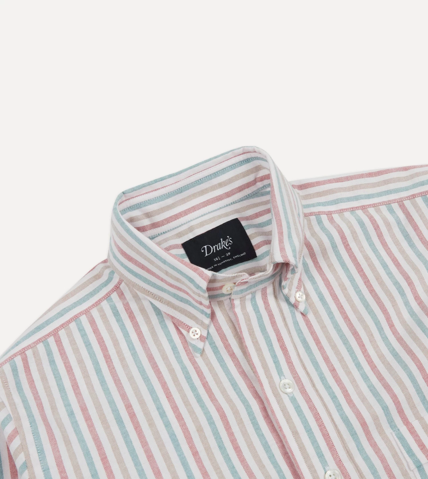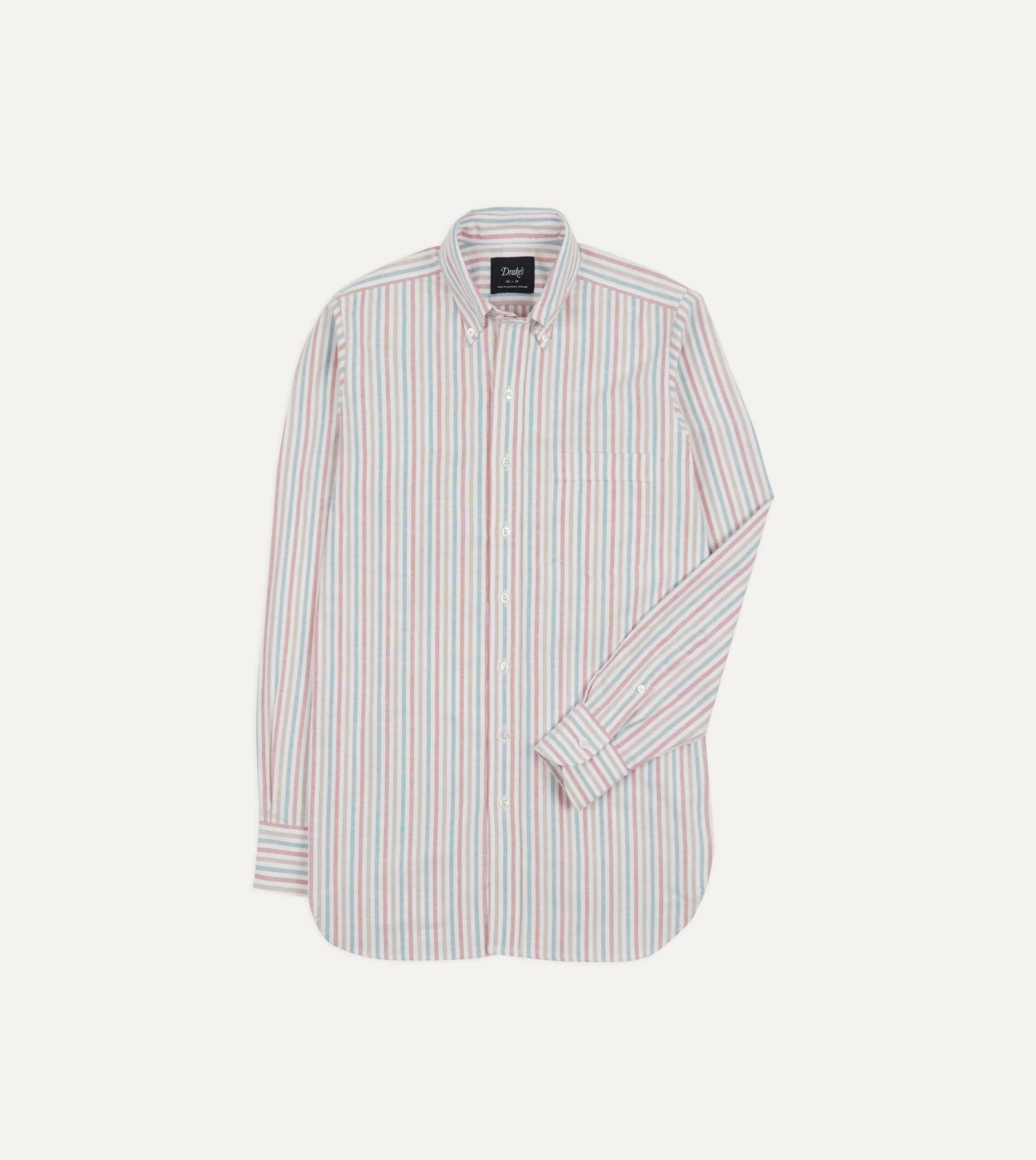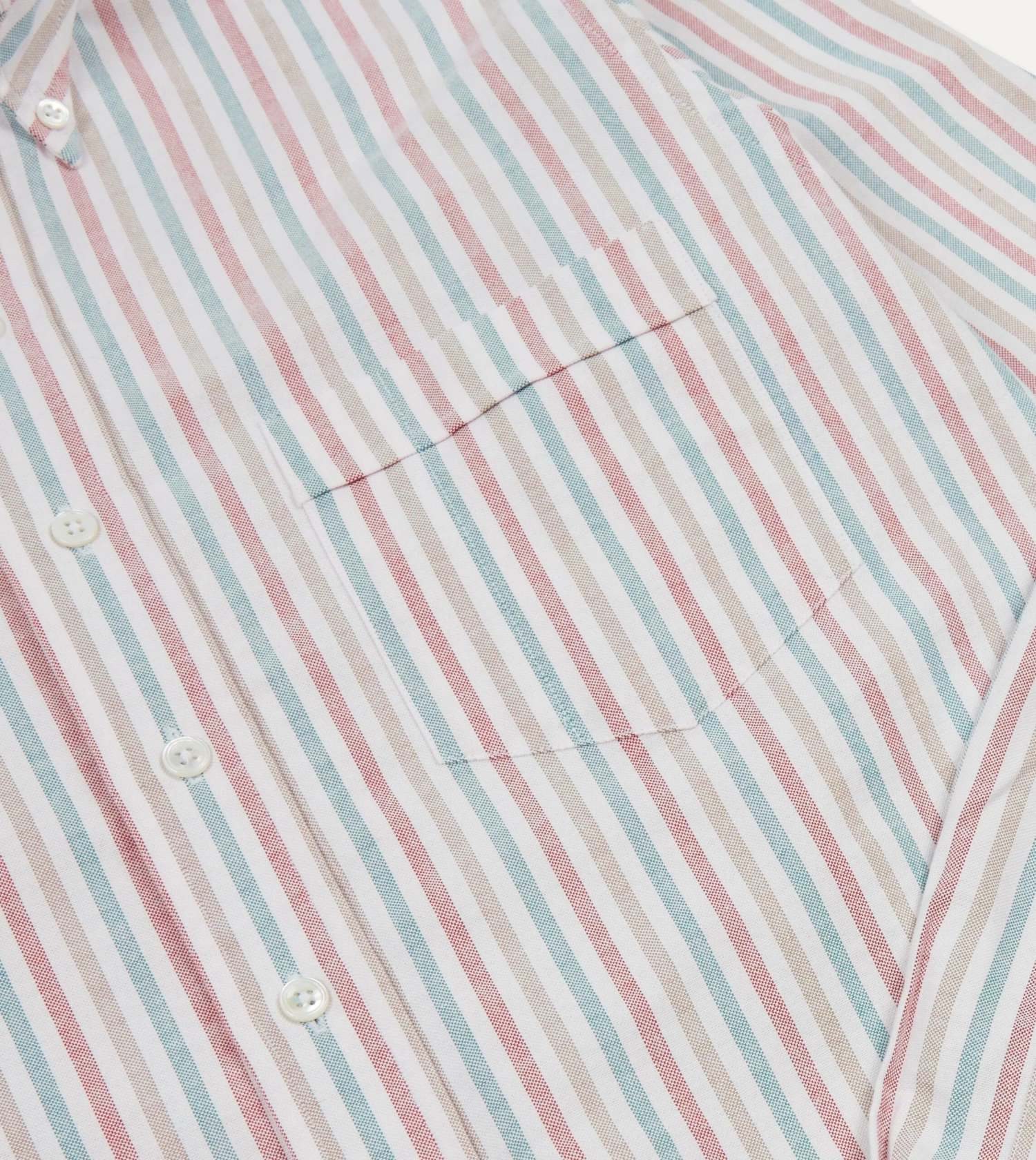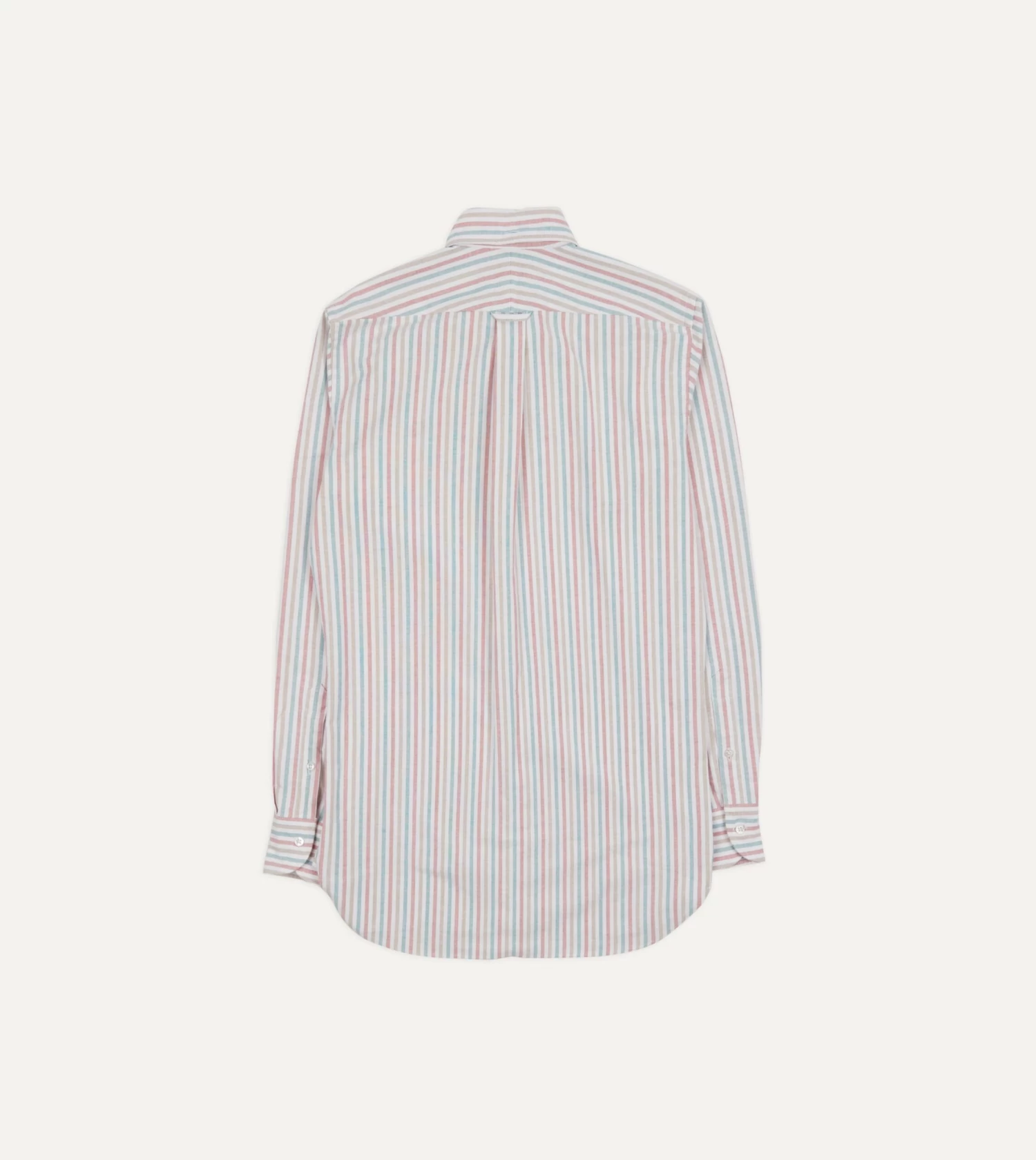 Red, Beige And Blue Triple Stripe Cotton Oxford Cloth Button-Down Shirt