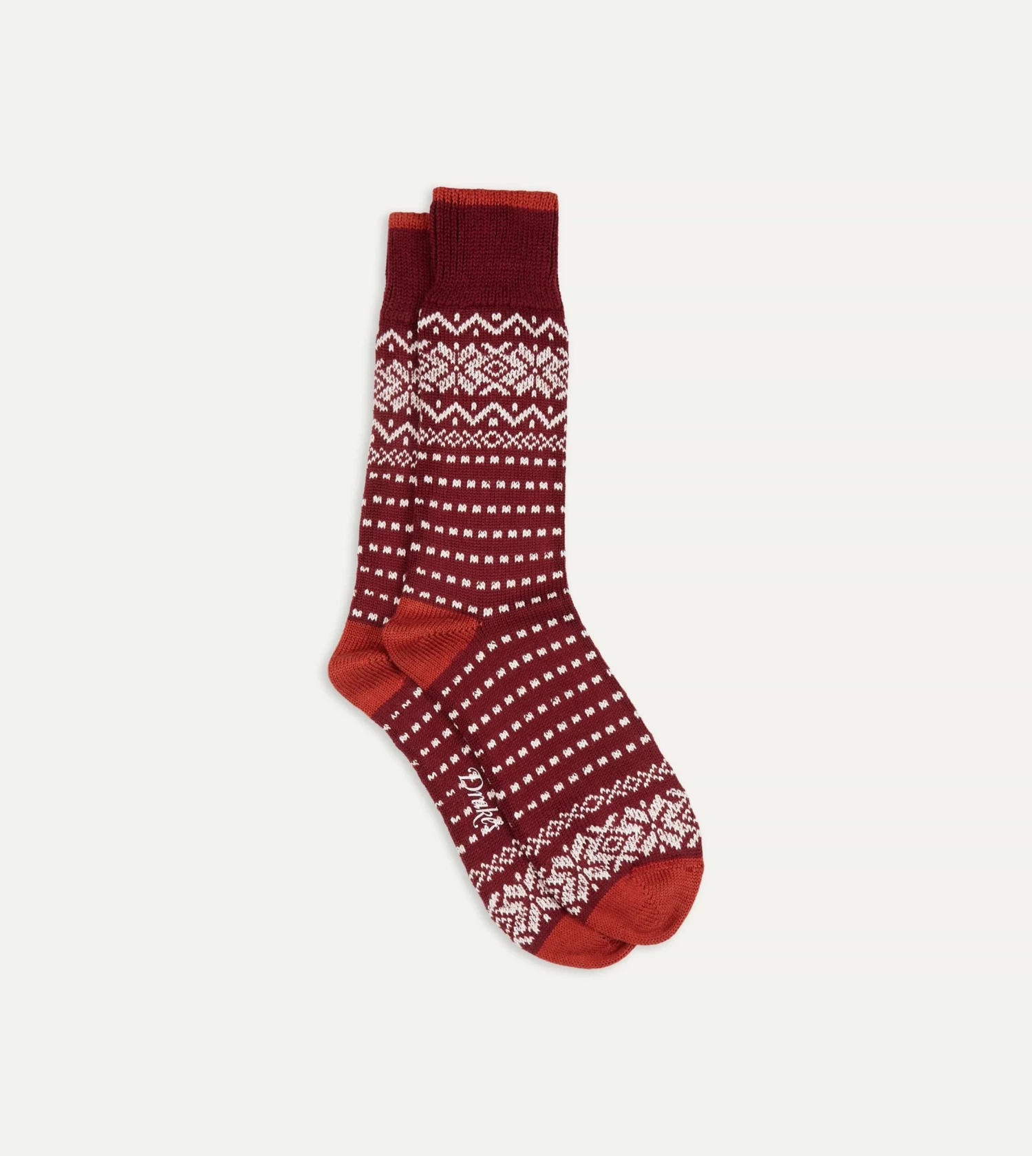 Red Fair Isle Wool Cotton Socks
