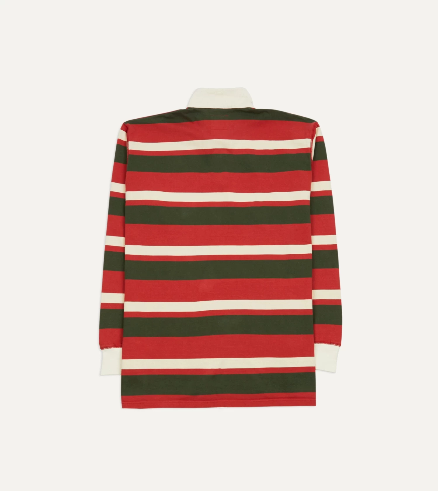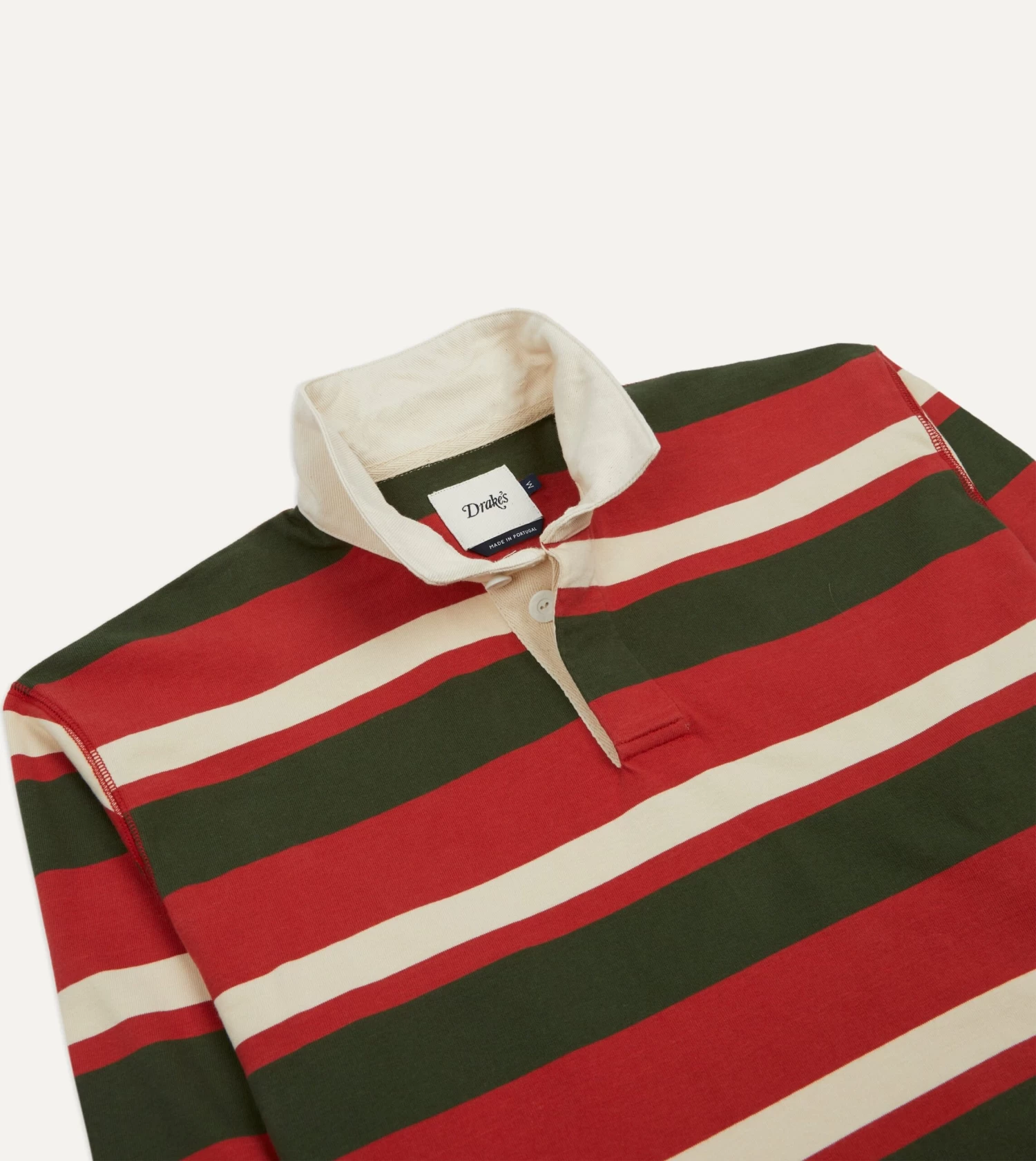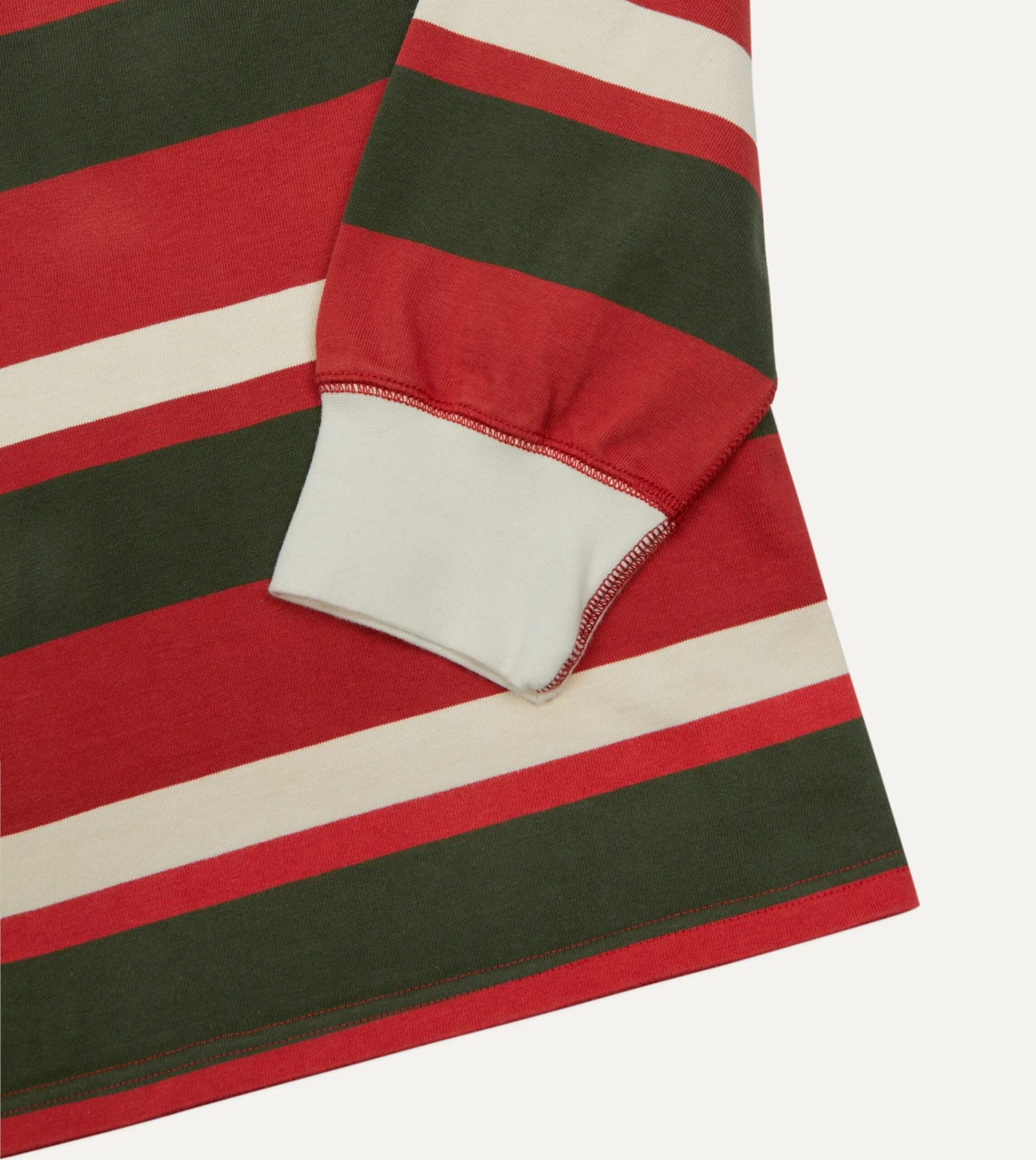 Red, Green And Ecru Stripe Cotton Rugby Shirt