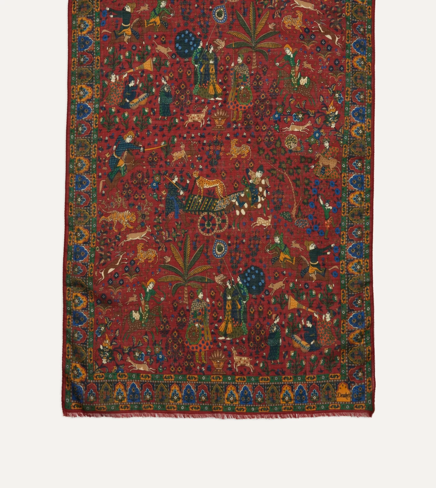 Red Mughal Hunter Print Wool-Silk Scarf