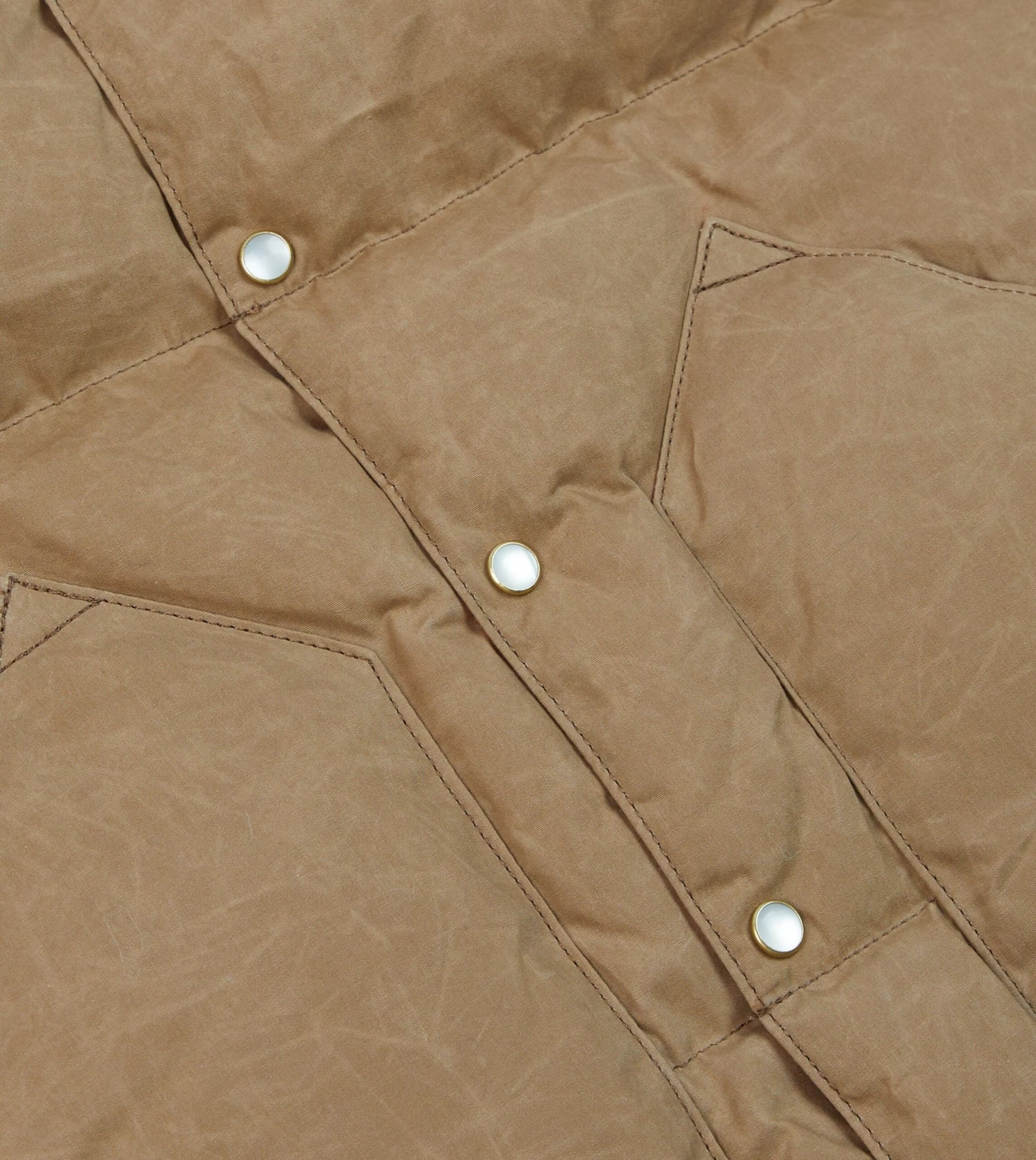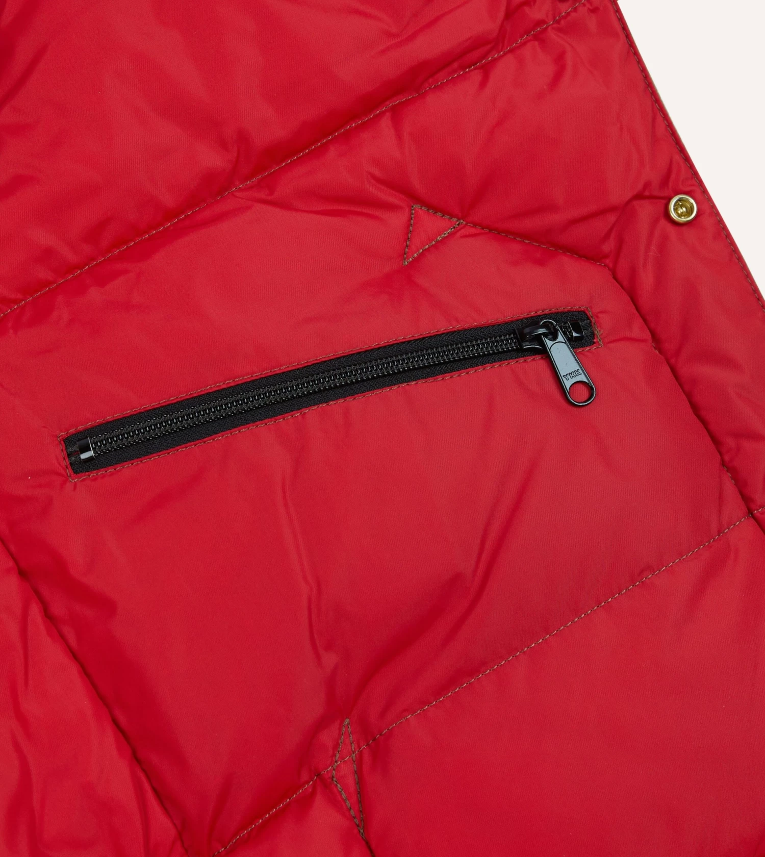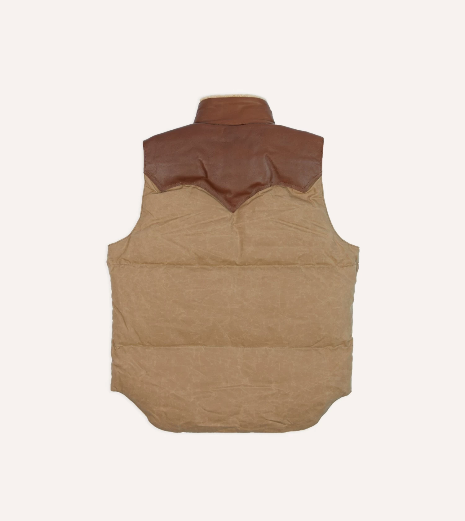 Made in Japan expressly for Drake’s to the same exacting standards as the American originals from the 1960s, the down vest from Rocky Mountain Featherbed features a single-piece Western style yoke and a 90/10 down to feather ratio filling for a stylish and warming addition to a winter wardrobe.