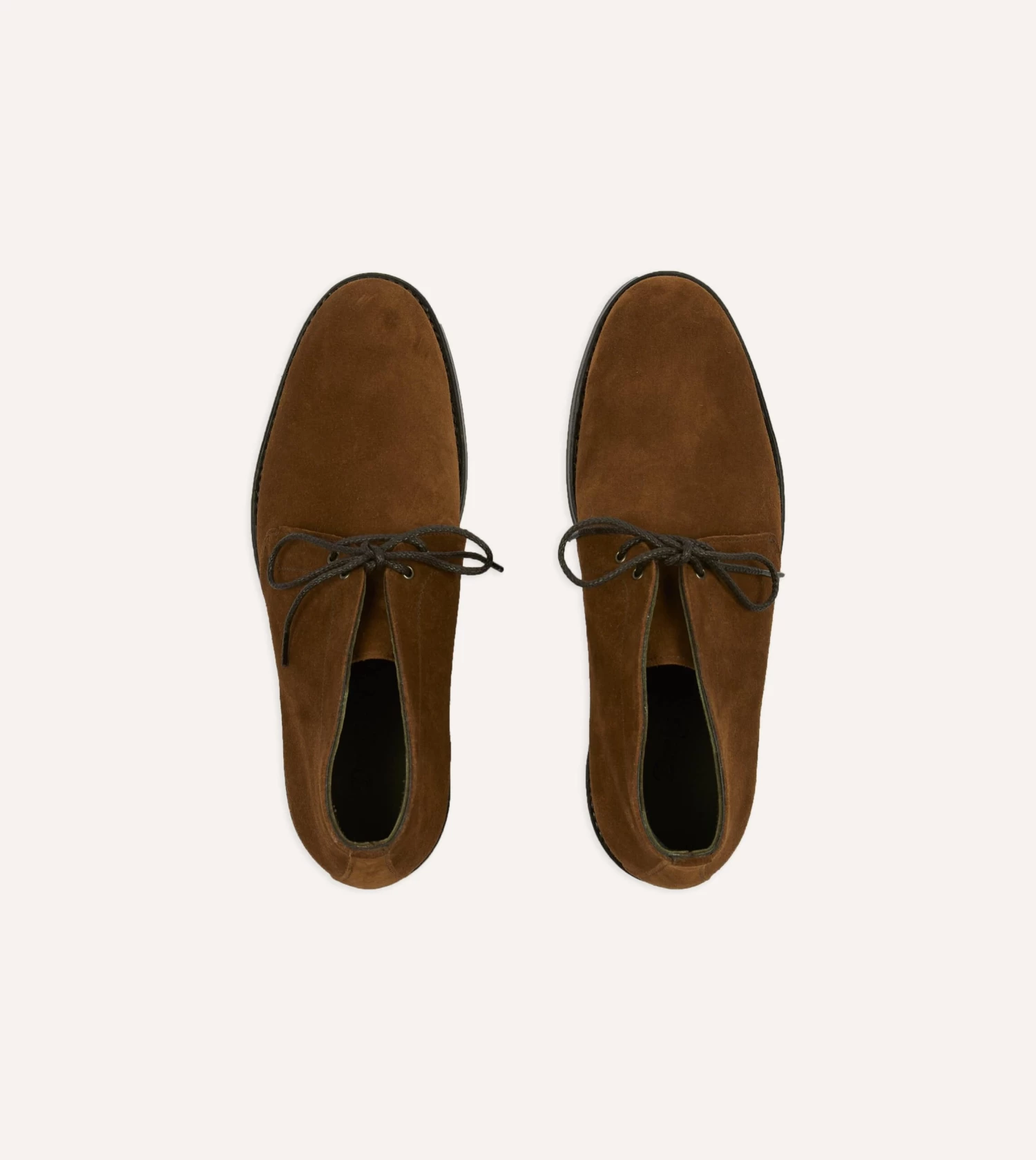 Named for William A. Murphy, a key figure in bringing Goodyear Welted shoes to the masses, our chukka boot is manufactured in Northampton, the home of quality British footwear, and features twin ringed eyelets, our signature green leather lining, and an open-channel stitched Dainite sole, complimenting our soft tailoring with aplomb.