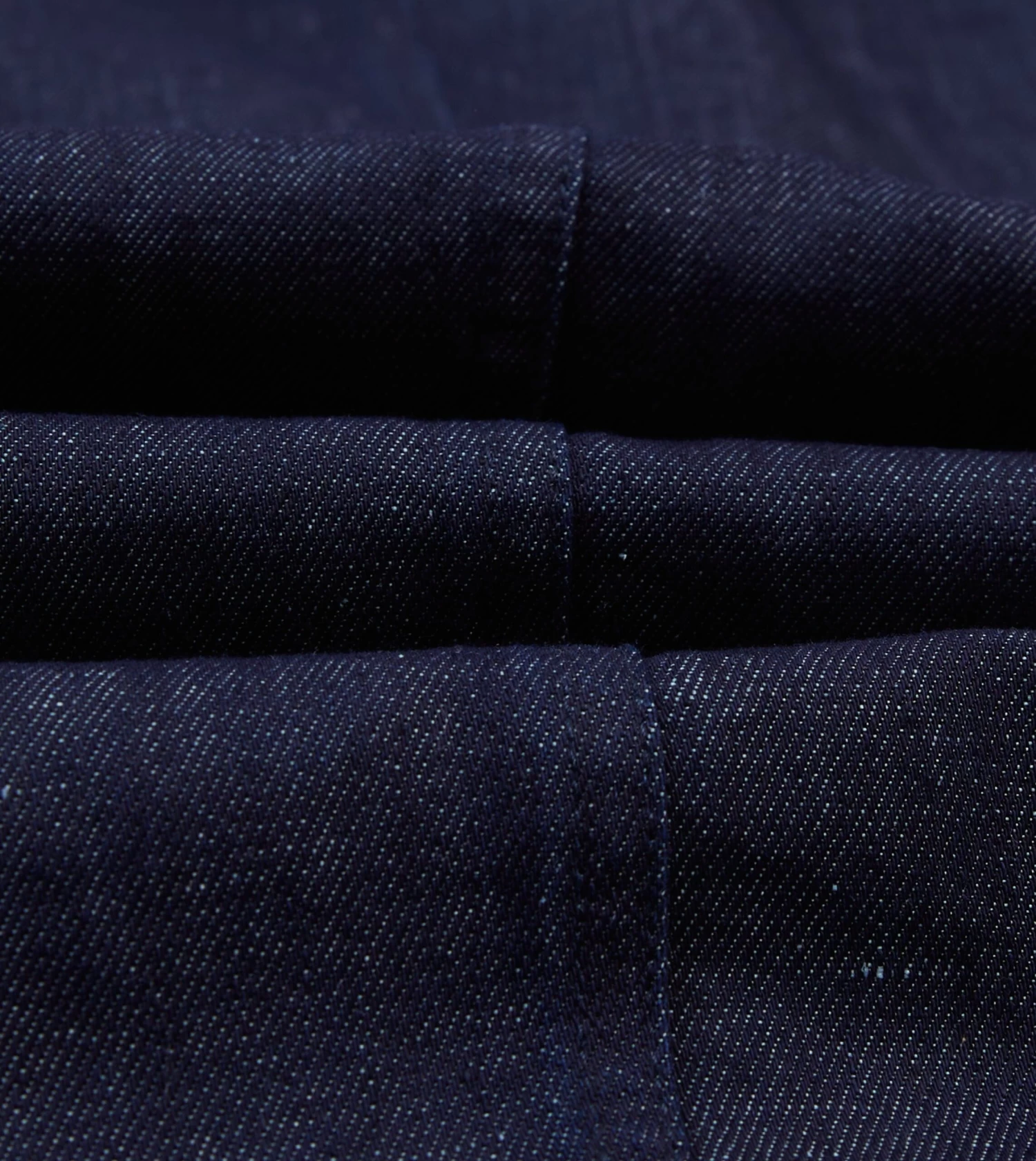 Cut from an enzyme dyed cotton canepa blend, we’ve also broadened the lapels out slightly, to make it a touch more redolent of the 1970s, with a functional keyhole valuehole for full fastening.