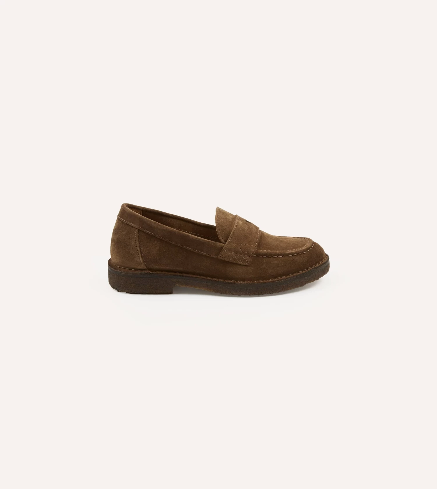 Designed to compliment our soft tailoring, the Canal takes the sensibilities of the classic penny loafer design (sans-beefroll), and adds rugged versatility in the form of a moccasin-style stitching around the vamp, a hardy rubber crepe sole, and a unique elliptic slot in the saddle strap.