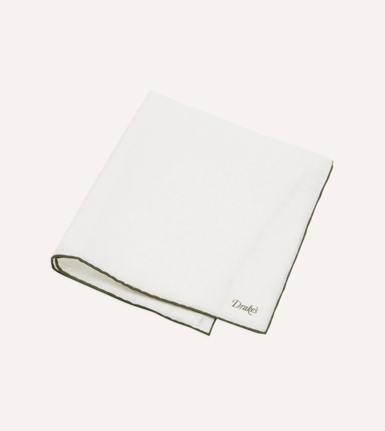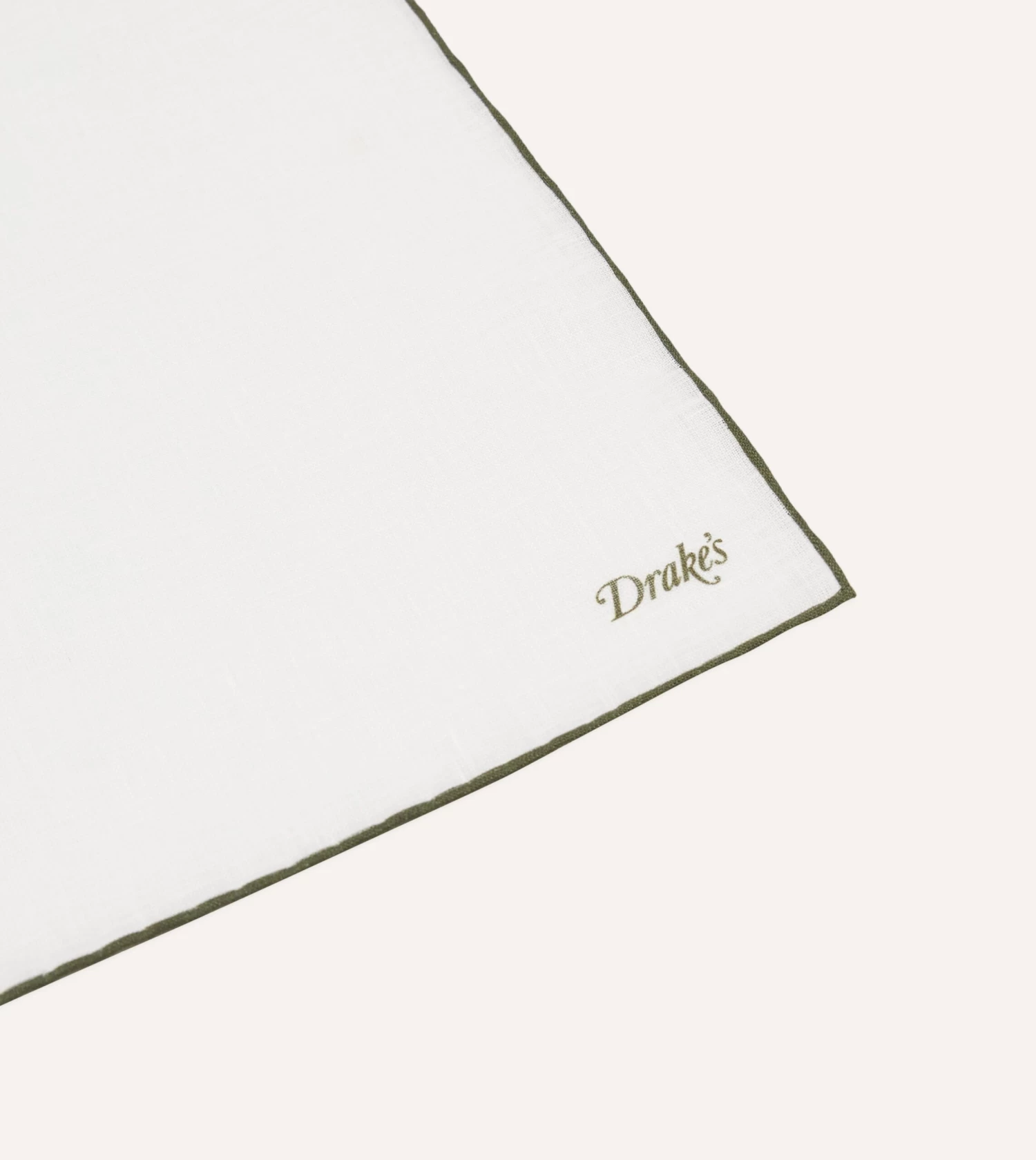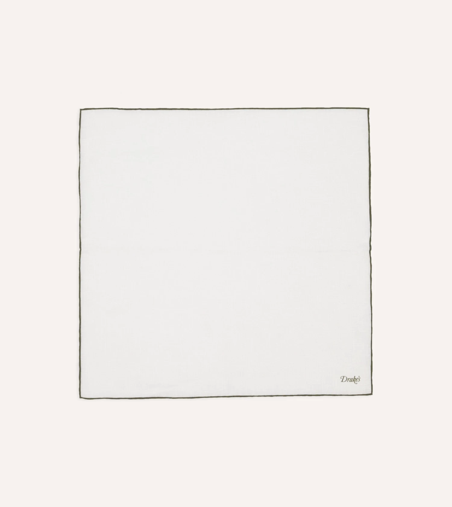 One of our most classic pocket square designs, the handrolled shoestring border creates a dynamic visual contrast however it is folded (or stuffed) in one’s pocket.