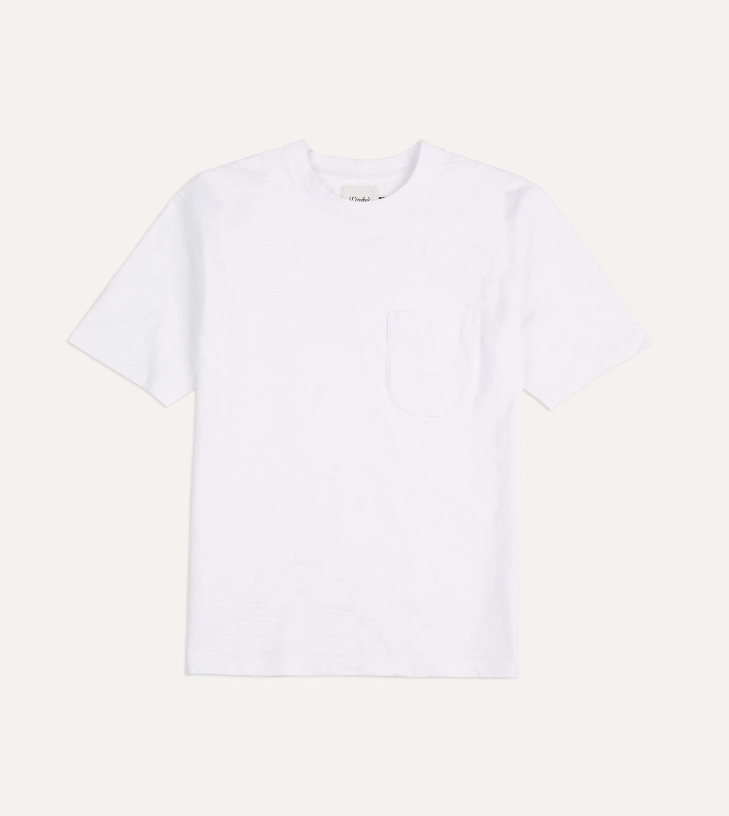 Cut in a classic shape using a cotton flamé fabric with a slightly slubby texture and a comfortable stretch, this staple t-shirt is sporty and versatile, with understated details reminiscent of mid-Century sporting apparel.