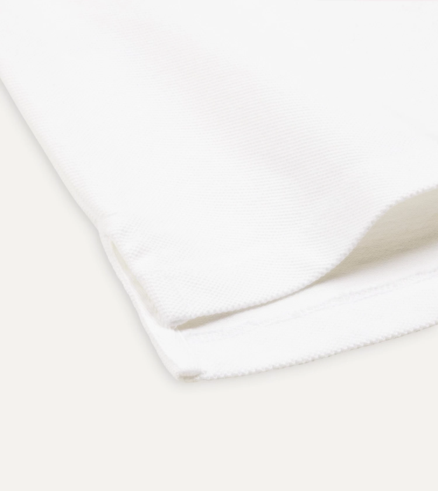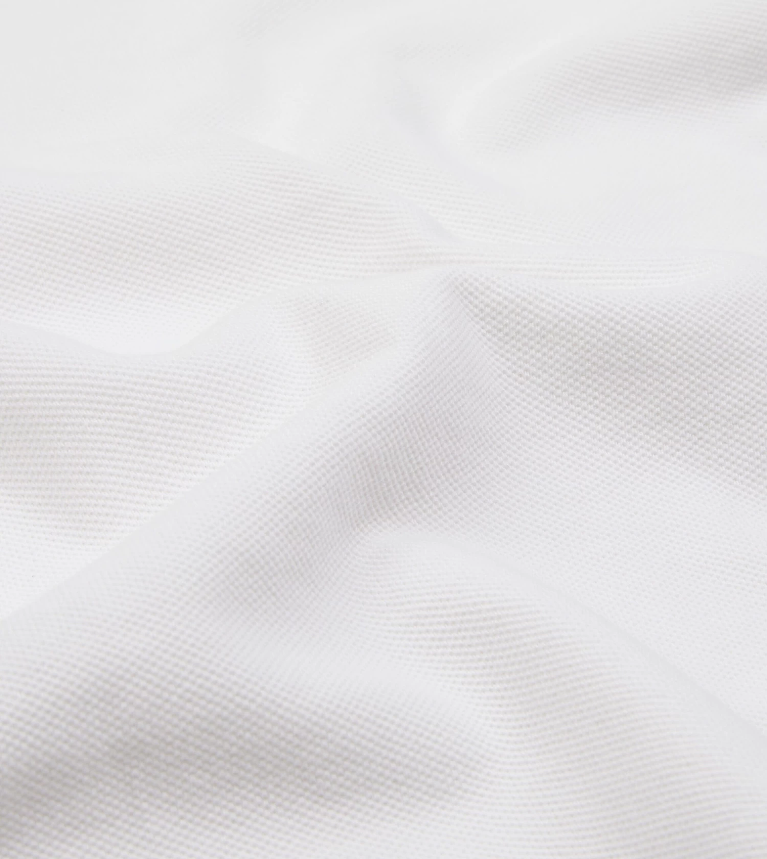 This version is constructed from a breathable Portuguese pique cotton, and features a stepped hem and mother of pearl values for a timeless, elegant essential.