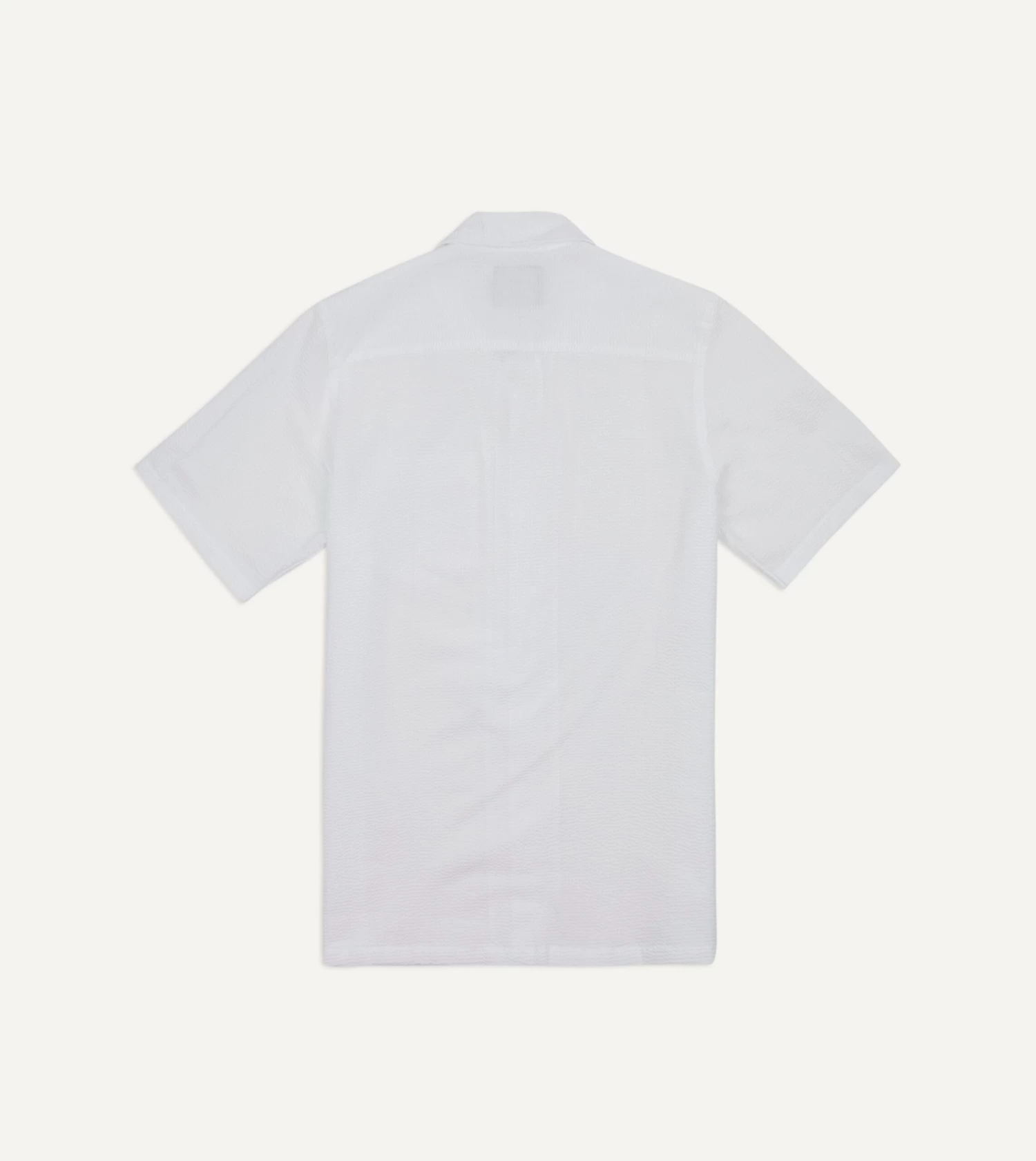 The Drake’s take on this warm weather staple brings the story up-to-date; cut with a neat open collar, loose fit, plain front and straight hemline, all constructed from a soft, breezy seersucker fabric. It is, quite simply, the quintessential high summer shirt.