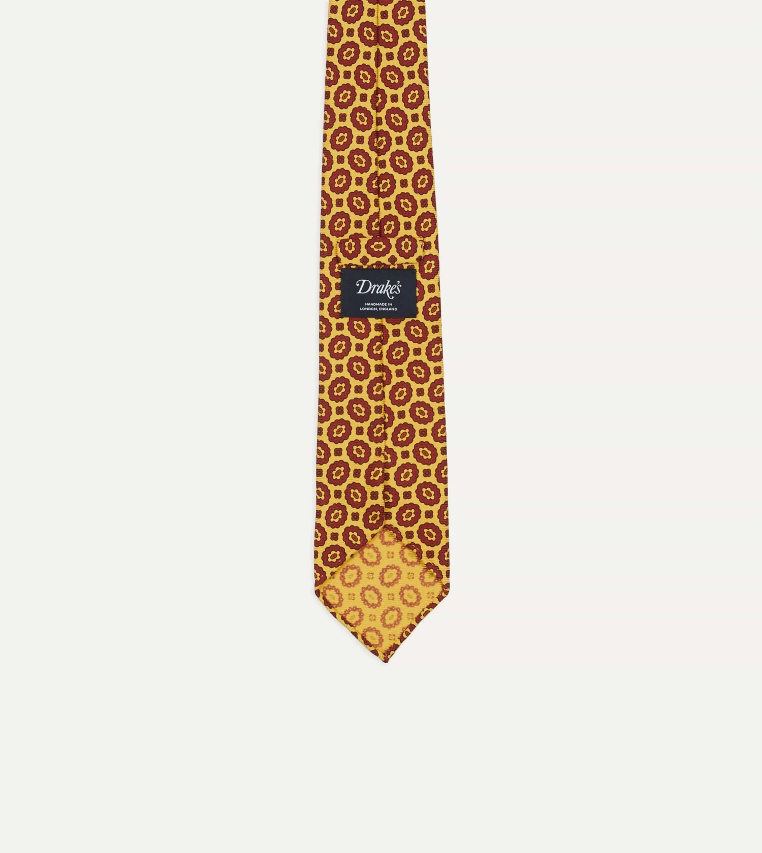 An elegant necktie, handmade in London and featuring an archival tile design, hand-printed in Macclesfield on 40oz Madder silk.